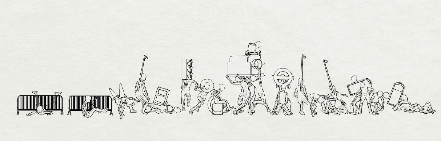 firstly, by incentivizing playful processes of shared authorship, creative heterarchy and collective direction; disrupt their regulatory power over bodies. This scenographic proposal dislodges the operatic event from its jewelled architectural box to make the genre accessible and a tool to interrupt urban alienation and its exhausting mobilisation of people.