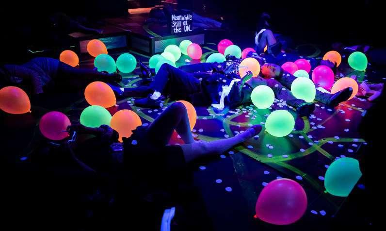 Moving towards the final act, when the love bombs/balloons were dropped onto the stage, we were able to experiment with the material of the set.