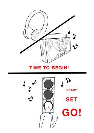 Such principles became the basis for our project. In addition, we wanted to incorporate the collectively accessible and improvisational potential of street performance in the very process of making and preparing performance. To this end, we created a board game (without a board) which removes the need for rehearsals, makes every performance unique and enables performers and designers to prepare a performance without the overseeing eye of a director or any authoritative figure.