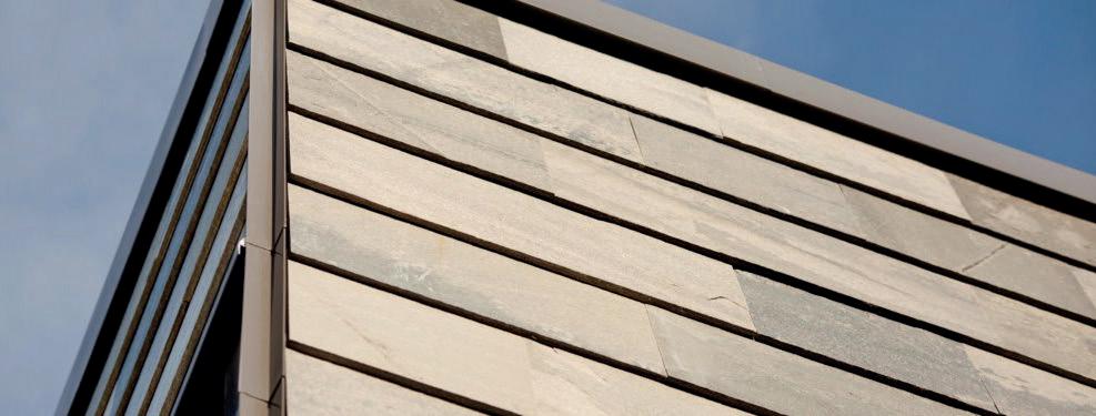 Natural stone for outdoor use is usually laid on a loose substrate and so can be re-used. All natural stone that is held in place on roofs and outside walls by screws or