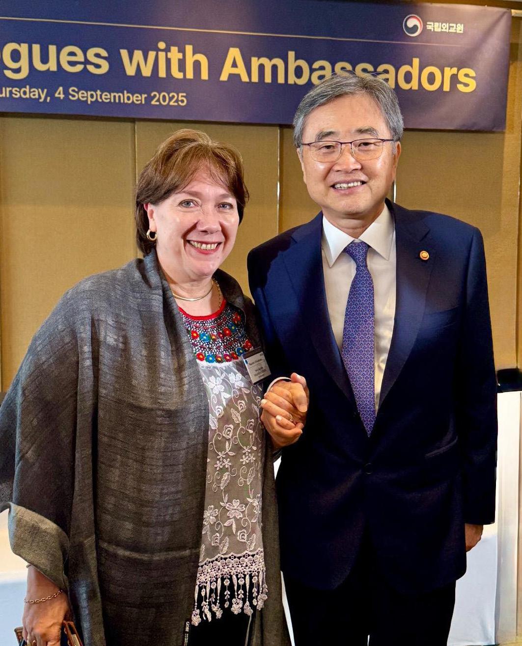 La Embajadora de Guatemala en Corea del Sur, Sara Solís, participó recientemente en una conferencia ofrecida por el Ministro de Relaciones Exteriores de Corea, Cho Hyun, organizada por la Academia Nacional de Diplomacia de Corea.