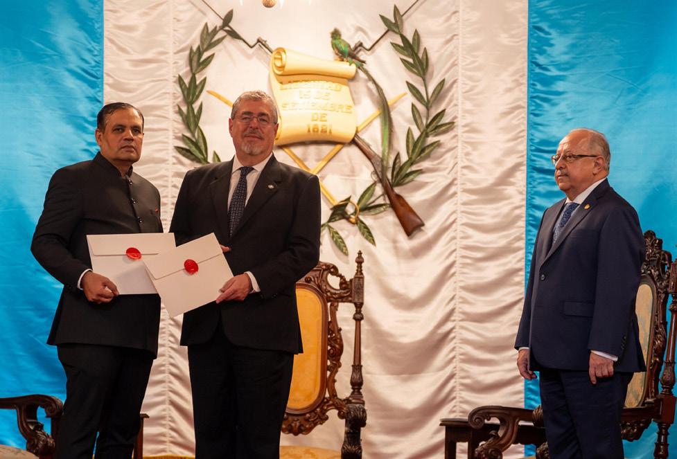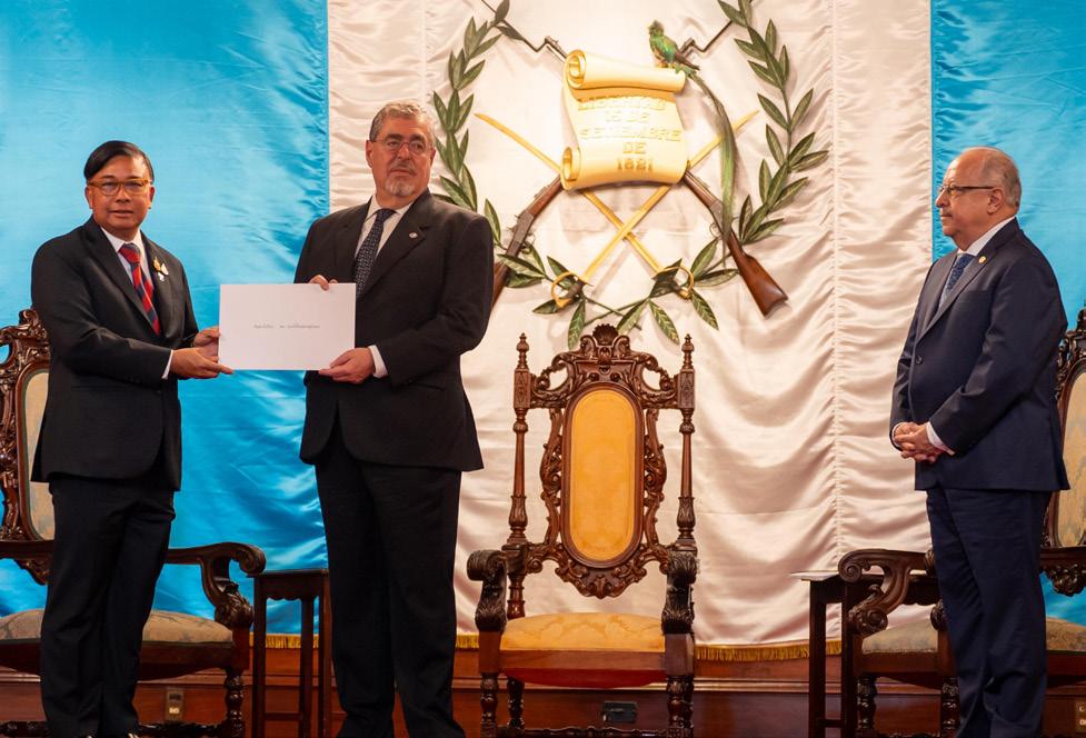 El Presidente de la República, Bernardo Arévalo, acompañado del Canciller Carlos Ramíro Martínez, recibió las Cartas Credenciales de seis nuevos Embajadores que los acreditan como representantes de sus Estados ante el Gobierno de Guatemala.