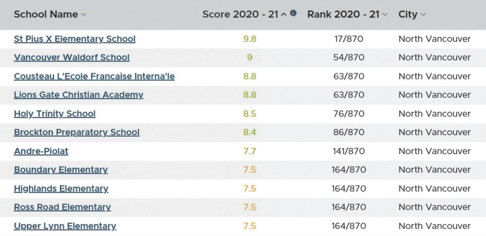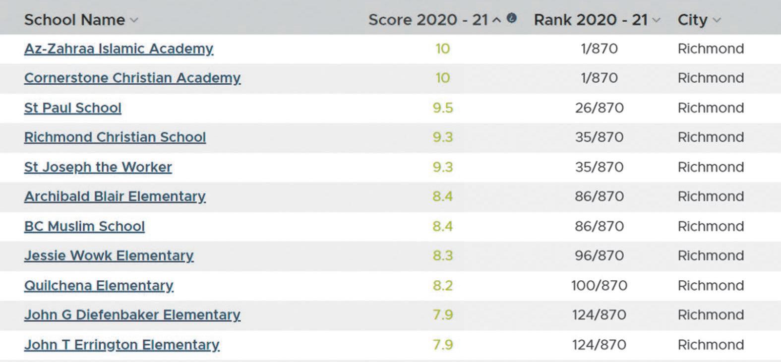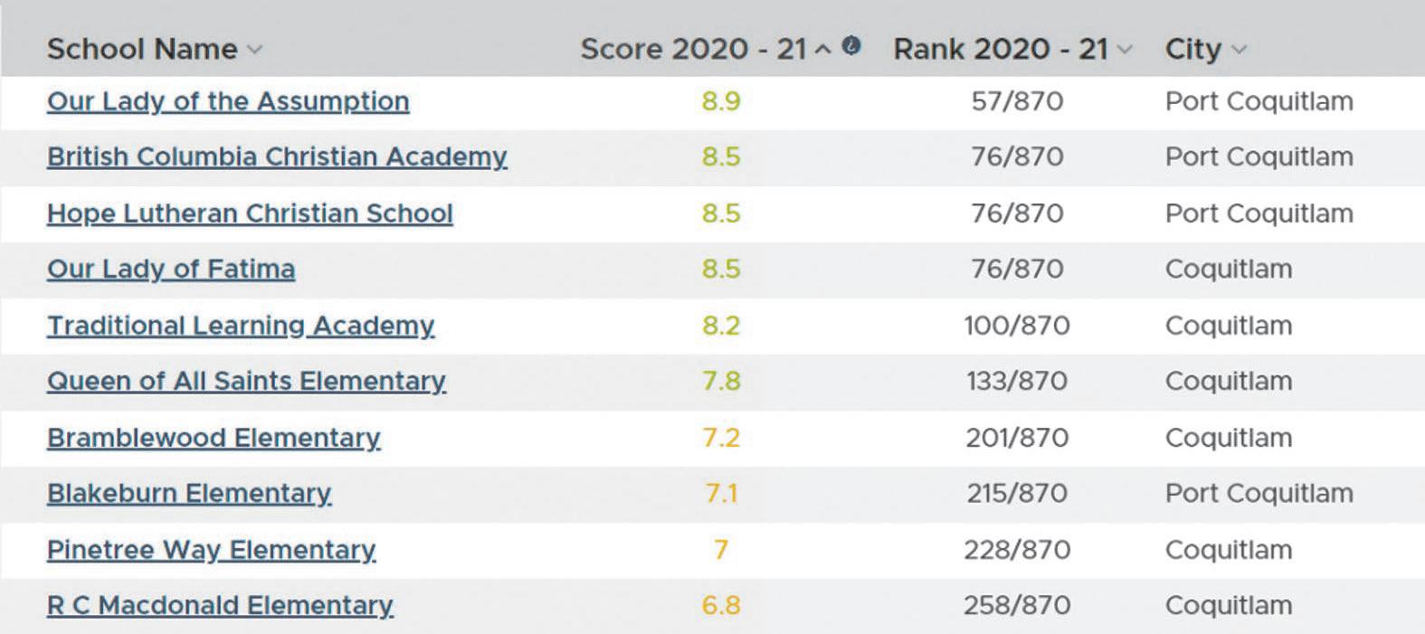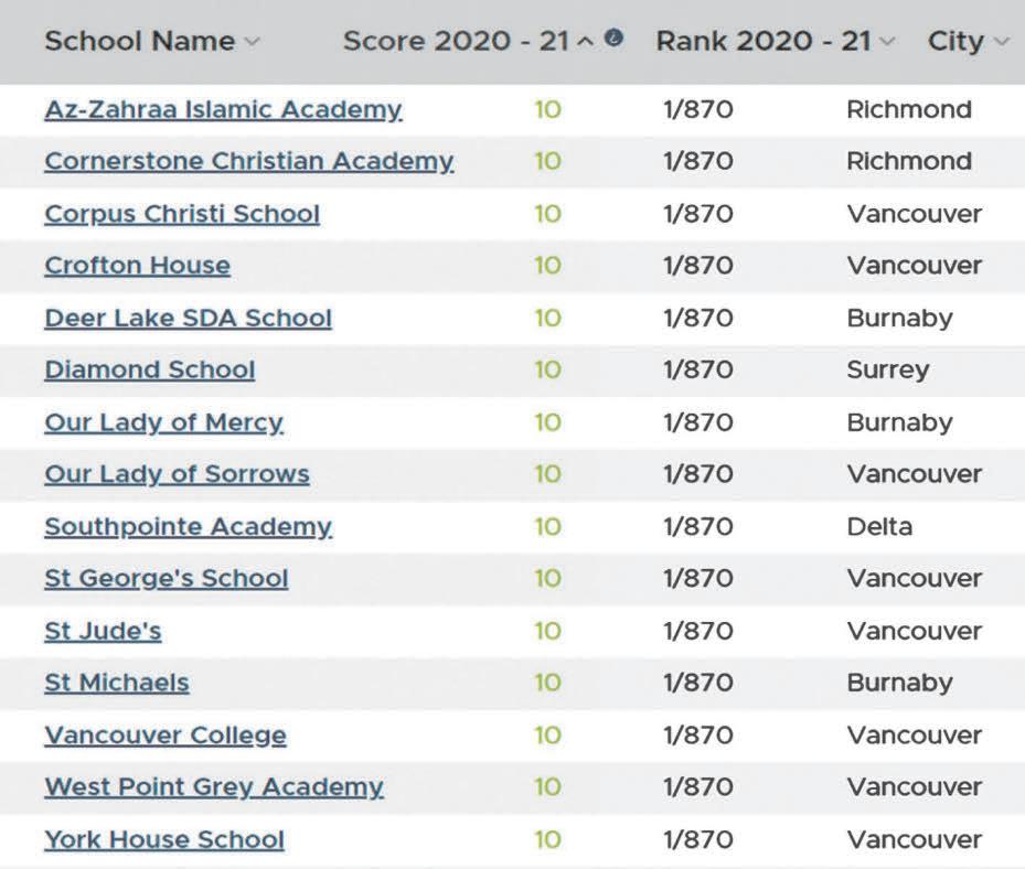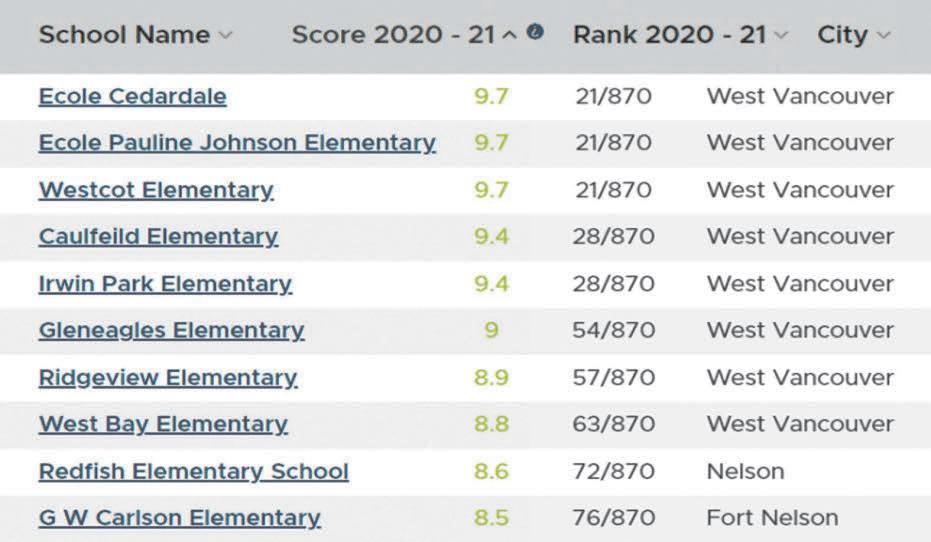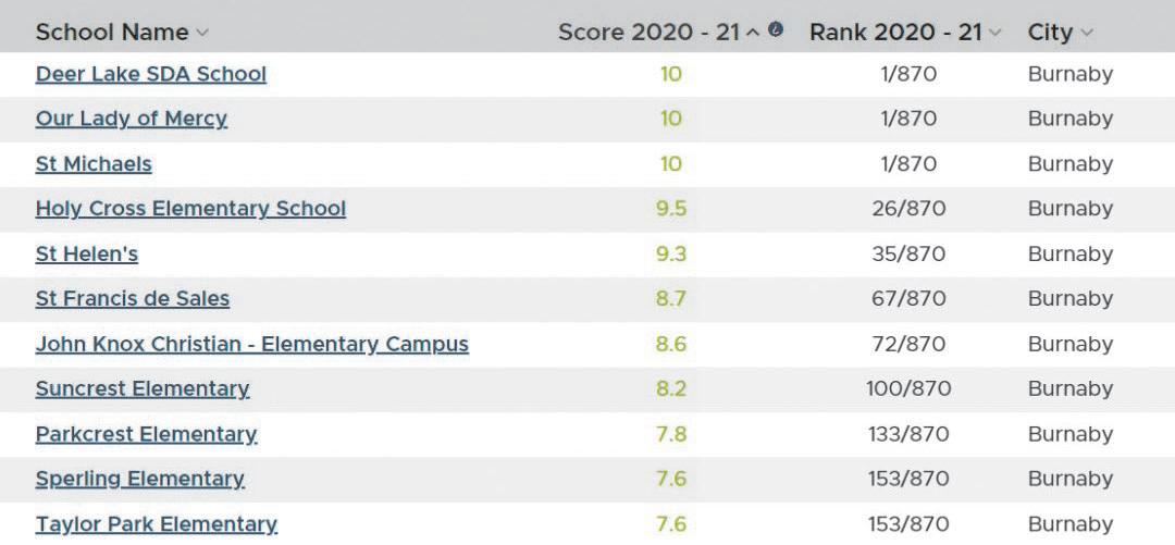 菲沙研究所 2022年卑詩小學排行榜