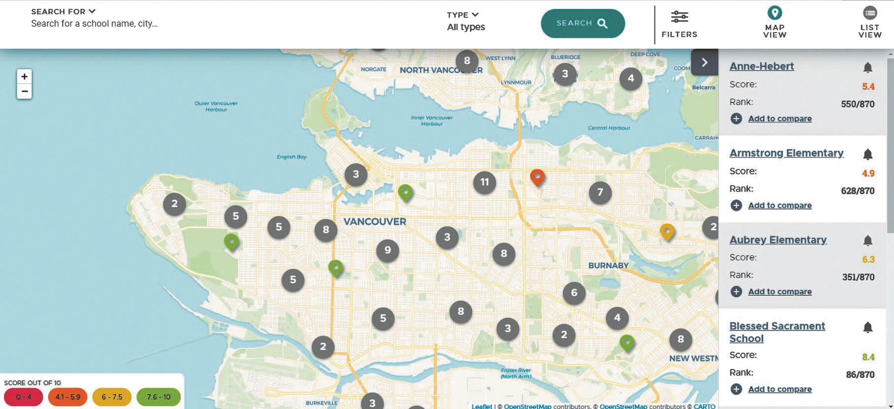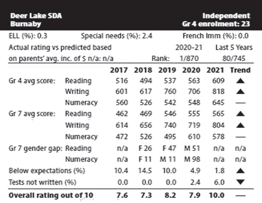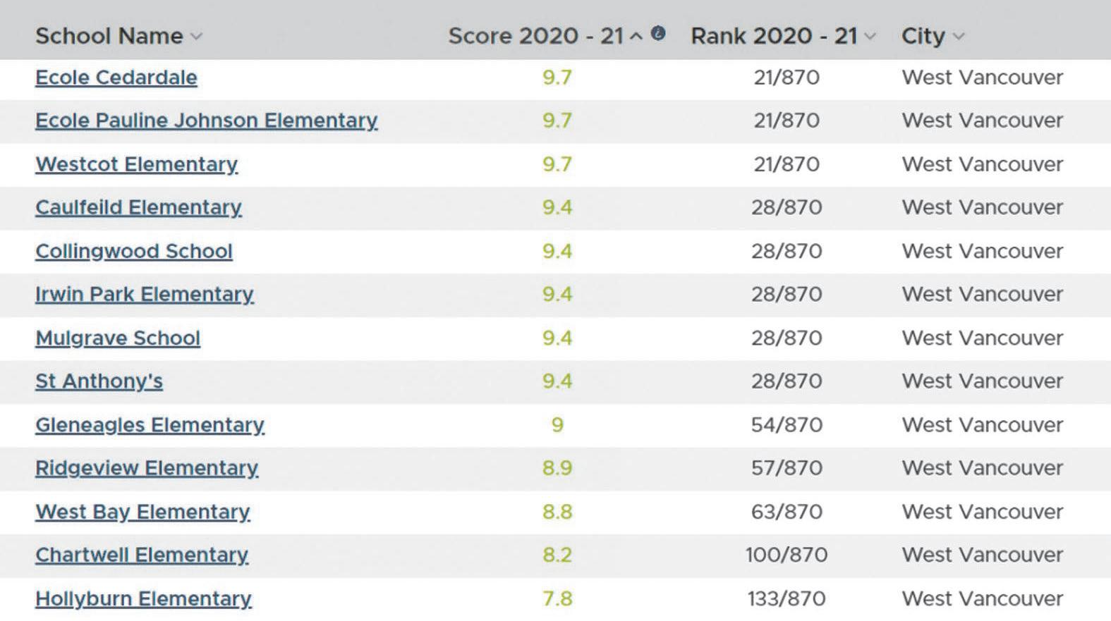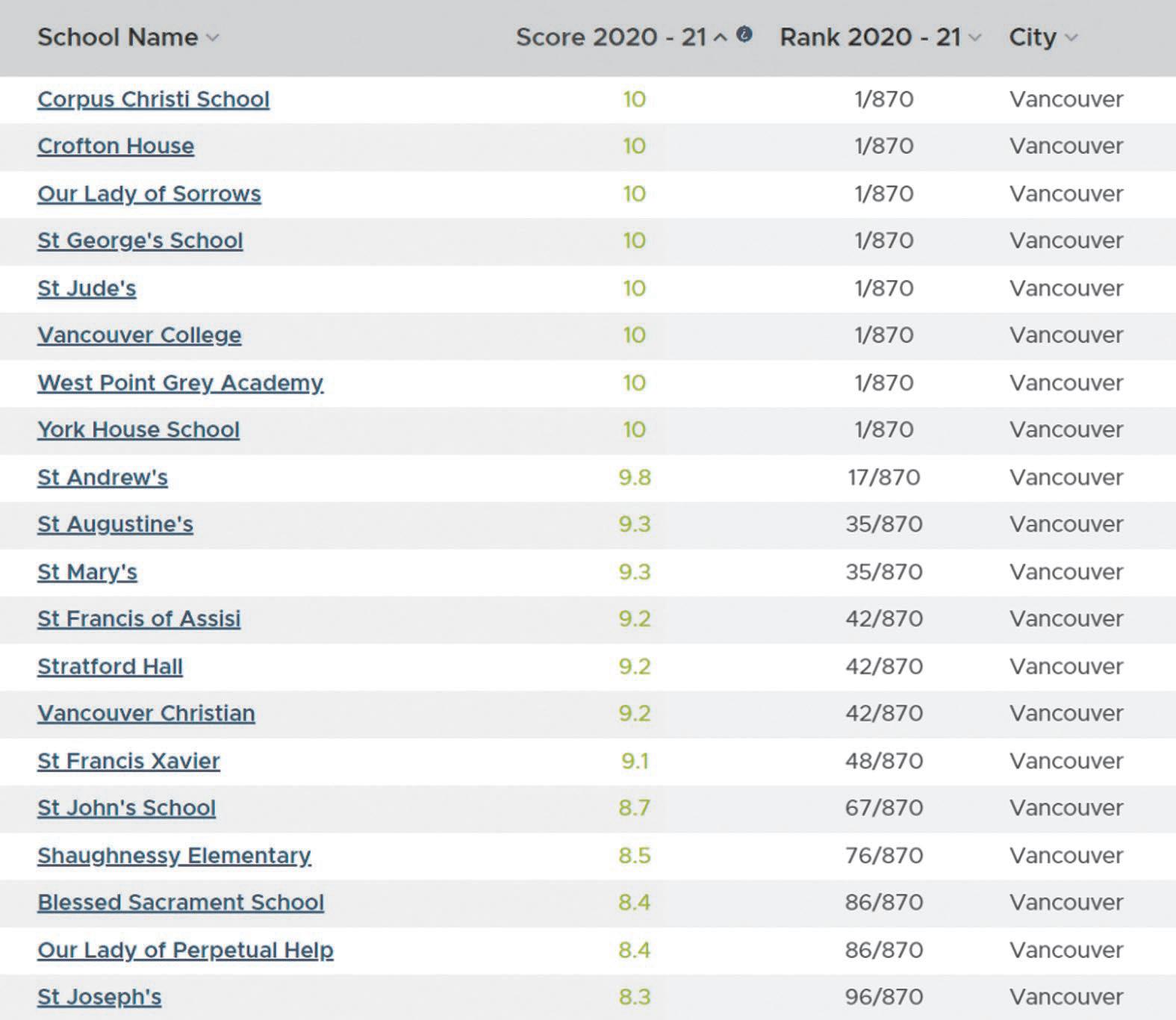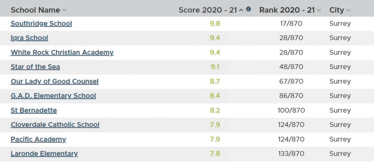 菲沙研究所 2022年卑詩小學排行榜