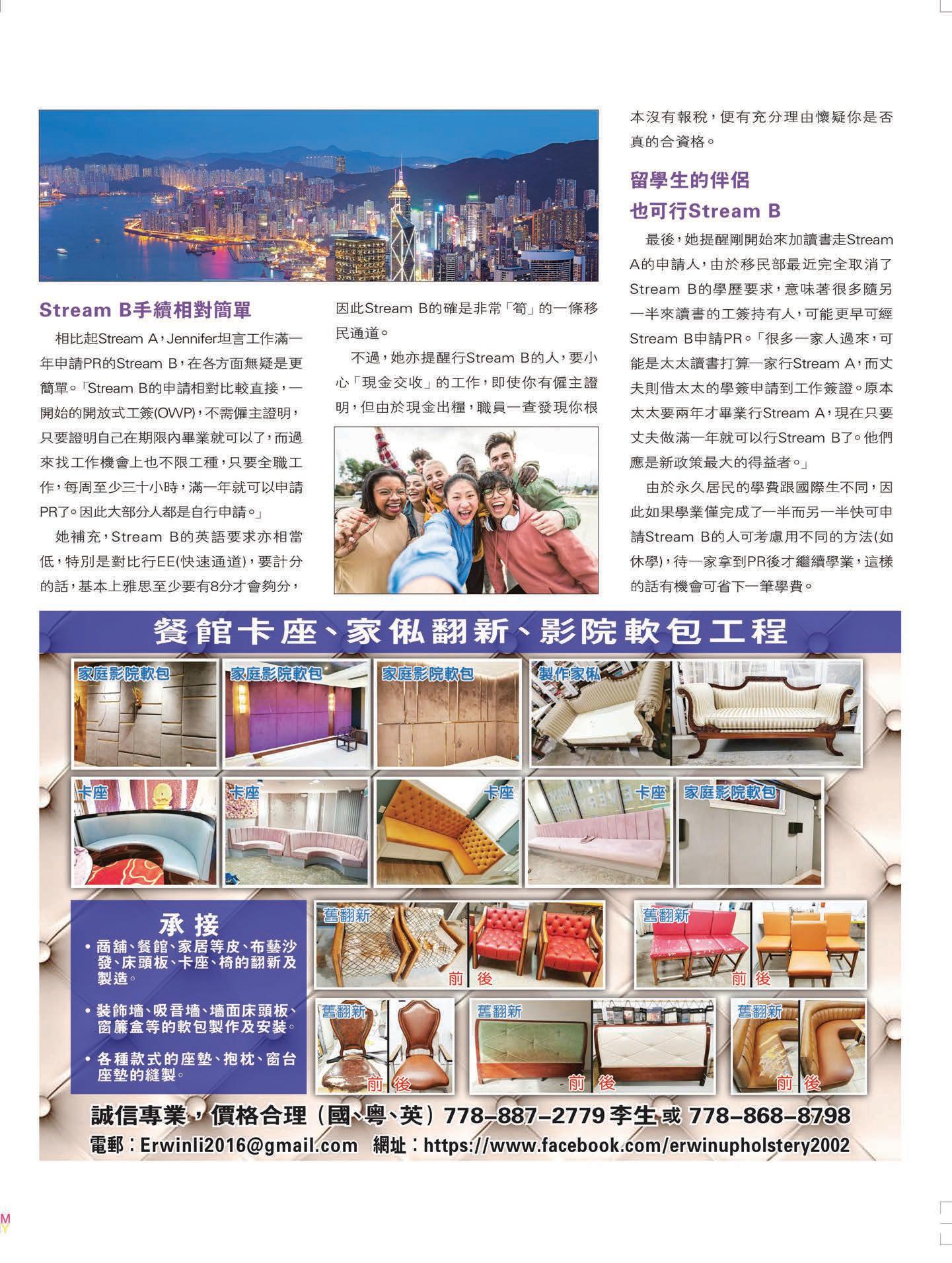她補充,很多人在找工作時都很有挫 敗感,特別是Stream B的艇仔,「有很 多原本在香港已很成功,或者是擁有很 高學歷,而來加後突然有一種不知道應 從哪兒入手的感覺。」