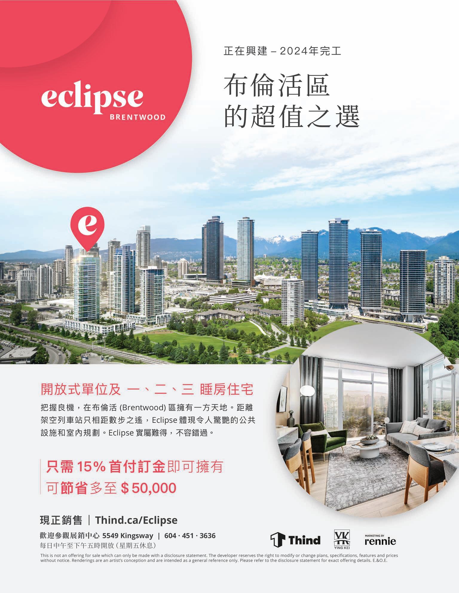14 MingPaoPropertyGoldPages 2022 年 11 月 24 日 明報地產金頁 擁有大量實力買家和強大銷售網絡,銷售特好特快,口碑載道。發展商樓盤代理之典範! www.LDGPROJECTS.com | 聯絡電話:604.267.7066 LDGProjectMarketing 發展商樓盤代理 THEGRAYSON SOLDOUT 售出 SOLDOUT 售出 BUTTERFLY BASALTATCAMBIE SOLDOUT 售出 APERTUREAT41ST SOLDOUT 售出 HAWTHORNE SOLDOUT 售出 SECOND+MAIN SOLDOUT 售出 LDGProjects 成功售出發展商樓盤 歡迎各位發展商委託銷售樓盤, LDGPROJECTS 團隊是最好的選擇! CentralLivingSurreyCentral 寧靜公寓社區 全新豪華公寓 www.central-living.ca 新盤 超級撿漏投資機會—西區全新公寓買 5 送 1 總標價$11,000,000 新盤 發展商預留的最後 6 套新頂層及次頂層 公寓,位於西區最佳黃金地段渥列治 OAKRIDGE 與 女皇公園 QEPARK 附 近,每戶面積大約 1400 呎,按目前附近同 類型的樓盤樓花銷售的市場價大約 $1600/呎,平均每戶市值在 $2,200,000 以上,總價值 $13,200,000。現發展商急 需套現,誠徵有實力投資人一次性全部購 買,打包銷售按 8 折優惠,最低按 $1280/ 呎虧本價出售,總標價 $11,000,000,相 當於買 5 套免費送一套大公寓!!! 渥列治及女皇公園附近黃 金地段,性價比超值投資! 目前租金大漲,每戶租金可 達 $6000/月,投資這 6 套 公寓每年總回報達 40 萬加 元,回報率接近 4%,可自 用也可全出租,待幾年後渥 列治商場重建完成後,升值 空間巨大!!! 先到先得! 發展商預留少量單位公開發售 SAVOY 西區甘比走廊全新豪華栢文 Savoy 位於溫西蓬勃發展並極具潛力的 Cambie 走廊夾 26 街 的核心地段,信步可達著名 QE 女皇公園,距離 KingEdward 天車站只有數步之遙,交通便利,前往溫哥華市中心、列治文 或機場都非常快捷。鄰近 Oakridge 購物中心、Cambie Village 商鋪餐廳,Hillcrest 社區中心等,生活十分方便。附近 多間頂級名校林立,是非常適合家庭居住的社區。 這棟六層高的全水 泥結構大樓提供 64 套精心設計的 Urban-1、1、2、3 臥室公寓與城市住宅,配備空調。享受奢華 都市生活與大公園自然環境。發展商預留少量單位,請即與 LDG 團隊聯絡查詢,電話 778-883-7366。 新盤 最理想素里市中心 寧靜公寓社區 別具特色的 一睡房、二睡 房和三睡房豪華公寓 CentralLiving,位於素里市中心 最佳地段寧靜內街,讓您感到活 力澎湃,鬧中取靜,附近各式商 店、餐館林立,鄰近多個公園和 各級學校。生活所需盡在步行範 圍,無需駕車非常方便。距離素 里市最大的中心商場僅百餘米, 中心公園一百米左右,跨過公園 就是天車總站,左邊緊臨 SFU 學校,右邊緊靠 UBC 素裡校址, 距市政府步行僅數分鐘。 ŌkuPre-sale 預售! 溫西 Marpole 區打造全新地標 新盤 ōku 坐落在溫西 Marpole 區,位於 64 街與 OAK 街交界處,交通生 活便利,頂級名校林立。溫西罕有 混凝土中央空調高端公寓項目, 純住宅式公寓,閙中取靜,隔音效 果出眾。戶型從開放式、一睡房、 兩睡房到三睡房均可滿足不同人 群對於居住空間的要求。秉承可 持續“零排放”環保理念,踐行綠 色建築設計,其建築標準嚴格 “LEEDGOLD”黃金認證。 ōku 溫西 Marpole 區一系列開放式、 一睡房至三睡房單位