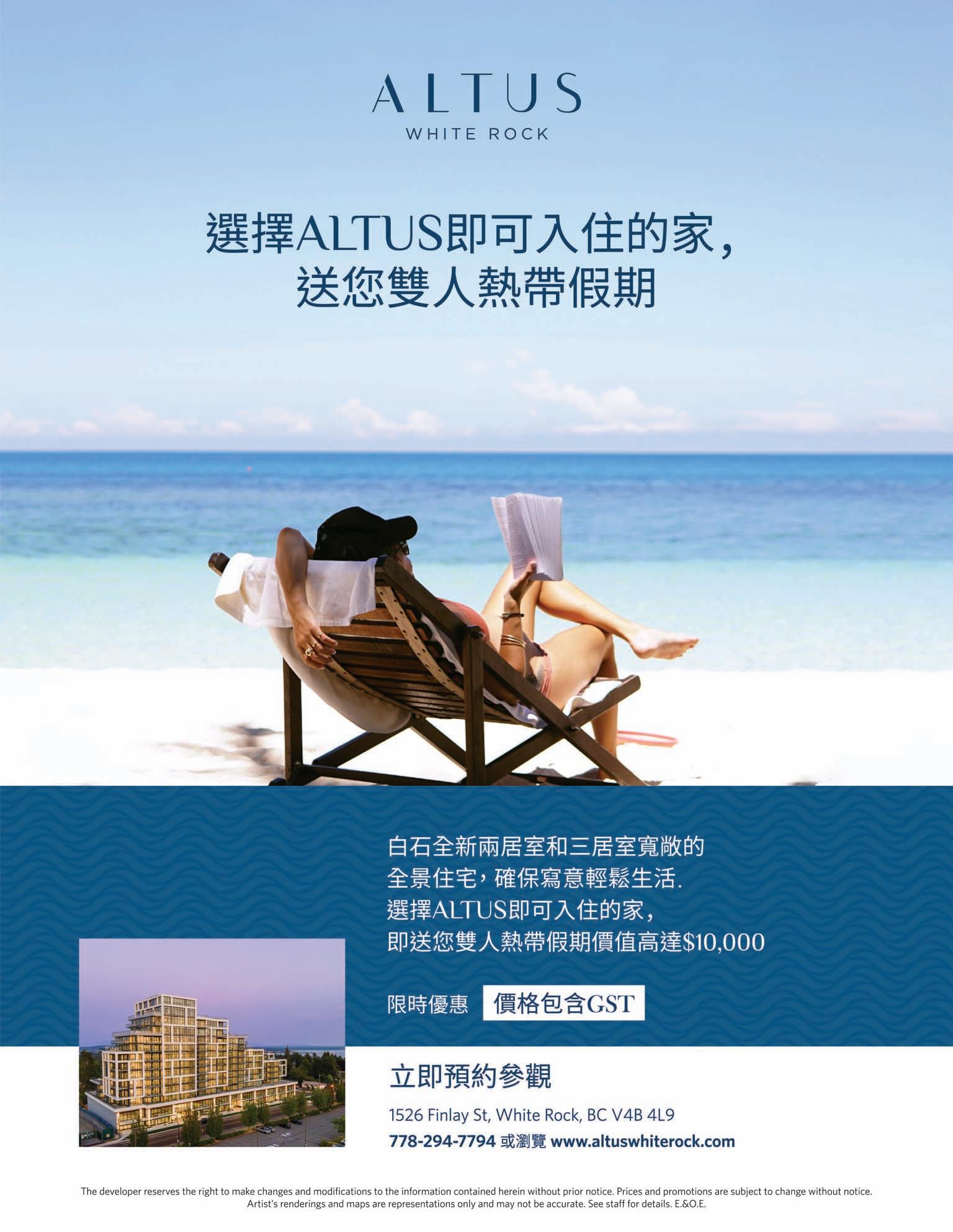 2 MingPaoPropertyGoldPages 2023 年 3 月 30 日 明報地產金頁 604-275-9787 樓盤及室內照片請瀏覽網頁 www.patsyhui.com 35年大溫地產局終身成就獎 Life Member 精英˙專業 許 太 PATSY HUI 超群˙卓越 列治文市中心罕有 低密度特大 高級柏文 靜中帶旺 + 最靚最寬敞圖則 + 可即入住 著名意大利建築商Quorum Group承建 ˙開放式光猛設計 ˙間隔寬敞 ˙中央冷暖氣 ˙高級建材 ˙寧靜內街 ˙交通方便 ˙近市政廳 ˙購物中心 Team President's Award President's Club Diamond Master Medallion
