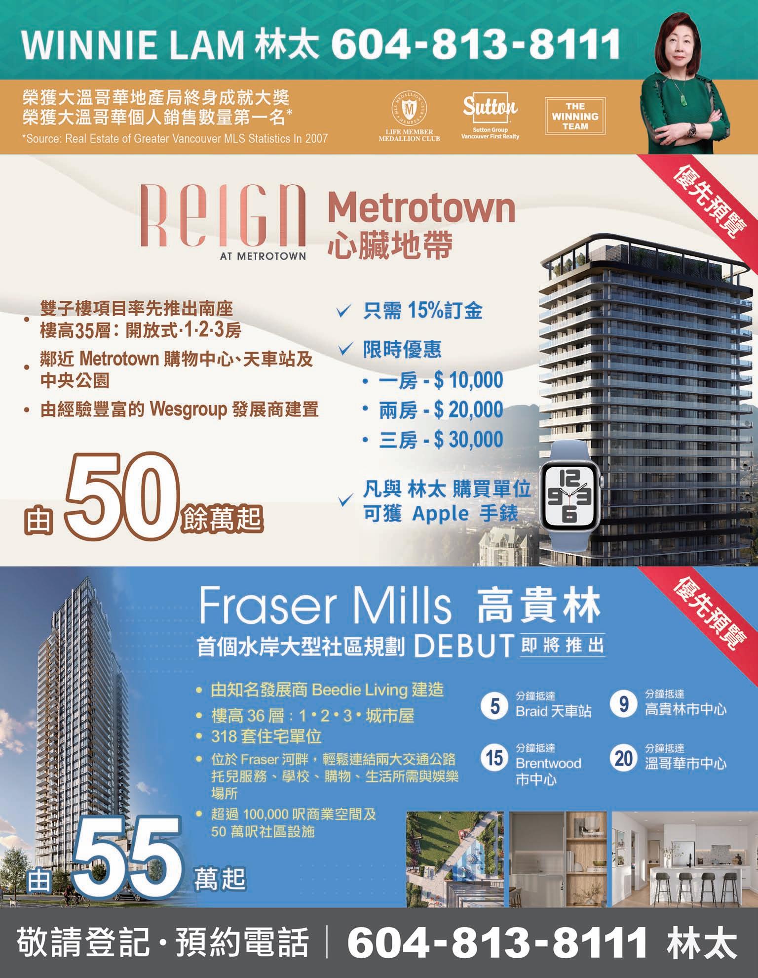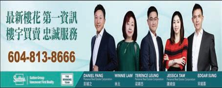 大溫地產局首1%銷售成績優異獎 樓盤委托及詳情:604-275-9787 或 email:patsy@patsyhui.com