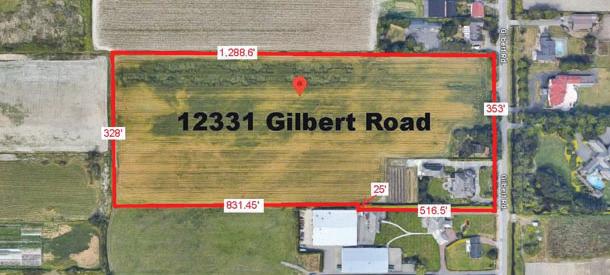 列治文中心地段,10英畝(434,134 呎)AG1農田,東 面Gilbert Road 353'、北面 1,288.6'、西面 328'。可作 農場、飼養動物、宿舍、日間托兒、寵物美容或馬術中 心等。 現有1,078呎屋,兩房+書房,兩廁,可建全新 4,036呎屋(以市政府最終批核為準),距離市區僅 3 分 鐘車程。售價$5,000,000