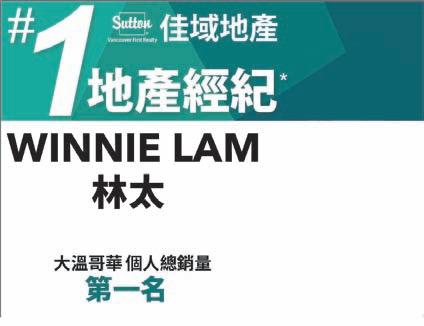 大溫地產局首1%銷售成績優異獎 樓盤委托及詳情:604-275-9787 或 email:patsy@patsyhui.com