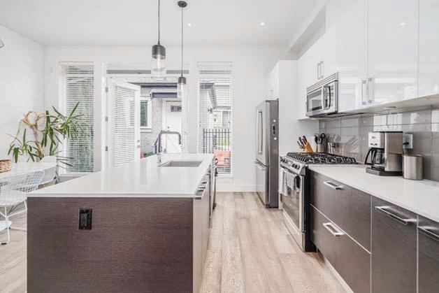 精美時尚、明亮 開放,757呎2房2廁,約40 呎儲物間,約118呎東北向大露台(有城市及 山景),落地大窗、實木地板,白色現代開放 式廚房有不銹鋼家電。1個保安停車位及1個 儲物櫃。可養最多2隻寵物。大樓設有禮賓 服務、健身房、會議室和花園庭院。近天車 站、福溪及Granville Island海堤,交通購物 非常方便。 售價$848,000 1209-445 W. 2nd Ave, Vancouver