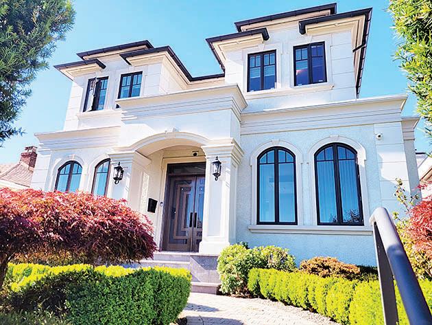 6,500 平方呎 ( 包括超過 460 平方呎的屋後獨立工作室,室內 有衛浴)。宏偉的門廳設有特高天花板,配上特式線板,地暖和 空調設備,明亮寬敞的起居室,中西美食廚房,正層有大露台 可作各式康樂活動。樓上 4 大套房,地下室設有吧台的娛樂 室、特大枱球室,媒體影視室,桑拿和蒸氣浴,2 客房(其中 1 間 改做運動室),2 個雙車庫。可步行至 Churchill 中學及 Laurier 小學校區,數分鐘車程可到達機場、UBC 和市中心。