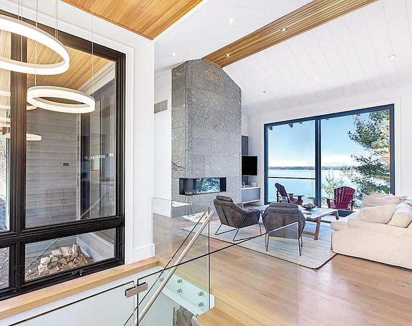 衛廁。門廳高聳天花。弧形華麗樓梯。主層開敞佈局,客廳和餐廳寬大明亮,設有多個天窗,大 門邊設有書房。開放式美食廚房,大型落地窗俯瞰公園般的後院。地下室設有娛樂室和洗衣房。