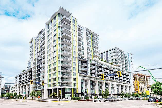 列治文市中心著名“One Park”,774 呎 2房2廁,單位設 有約5呎闊275呎大露台,8'6”樓底。開放式廚房配備名 牌 Miele煮食爐、焗爐、雪櫃、洗碗機、Panasonic微波 爐。21 呎儲藏/洗、乾衣機室,瓷磚/強化木地板,冷氣。