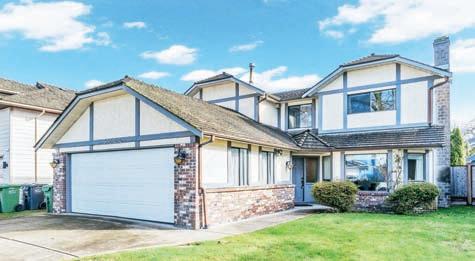 列治文靚地靚屋 列治文著名Tiffany區,地點方便,近市中心,公 園,購物,社區中心,學校,交通等。清靜內街。 4,198呎四正地,闊約43呎。屋內2,385呎 (主 層1,218呎,上層1,167呎),3廳4房3廁。近新 廚房及家電,自1984年一手業主,內外保養一 流,光潔明亮。寬大雙車房。售價$1,750,000