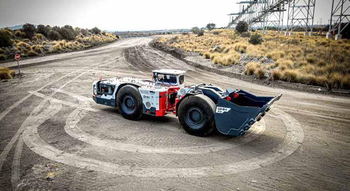 conditions and can operate at a maximum of 28% grade, 15% slope and a maximum of 52° degrees Celsius. The rear of the machine is also ergonomically designed with low and flat top covers to allow for maximum visibility for the operator as well as to be able to negotiate bad undulations in the footwall without hitting the hanging wall with the rear of the machine.