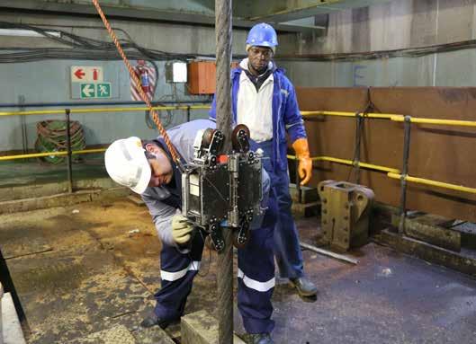 Paul Musgrove is WearCheck’s AFS operations manager. He outlines the testing process. ‘We use a standard set of instruments to test a variety of different steel wire ropes. This includes a magnetic rope test instrument, which is affixed to the rope. All WearCheck’s RCA instrumentation is calibrated annually by an independent thirdparty service provider.