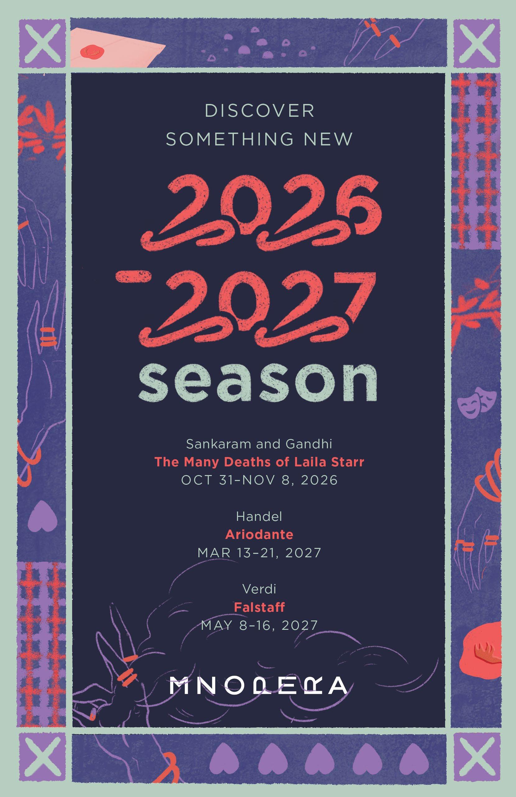 The 2026–2027 season will open with The Many Deaths of Laila Starr , the 52nd world premiere in Minnesota Opera history and the third new work to grace the stage in 2026 alone.