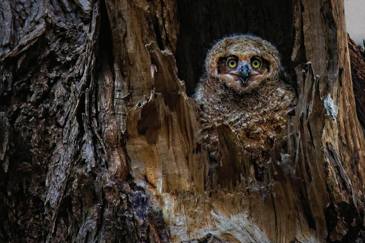 I consider Fort Snelling State Park a hidden gem of the Twin Cities. Early mornings and evenings, the park comes alive with wildlife. Most people are astonished that so much wildlife exists near two major highways and MSP airport. The Great Horned Owlet was captured early one morning in April, just after sunrise. That morning, the conditions were exactly what I wanted, making the shot successful. Within the next week, the owlet had left the nest and was exploring its new world, under the watchful eyes of its parents. This photo shows the vulnerability of one of nature’s great owls.