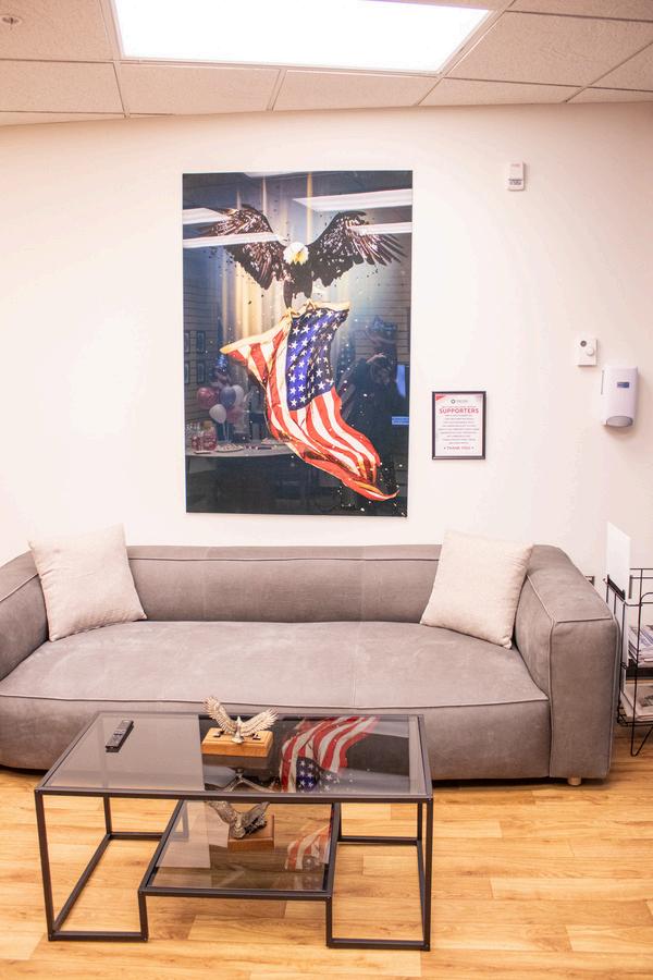 Azure and the Turtle Mountain Band of Chippewa Indians Tribal Council donated furniture, including a couch, loveseat, two ottomans, two chairs, an entertainment center, a smart TV, room décor, and a dining table with six chairs.