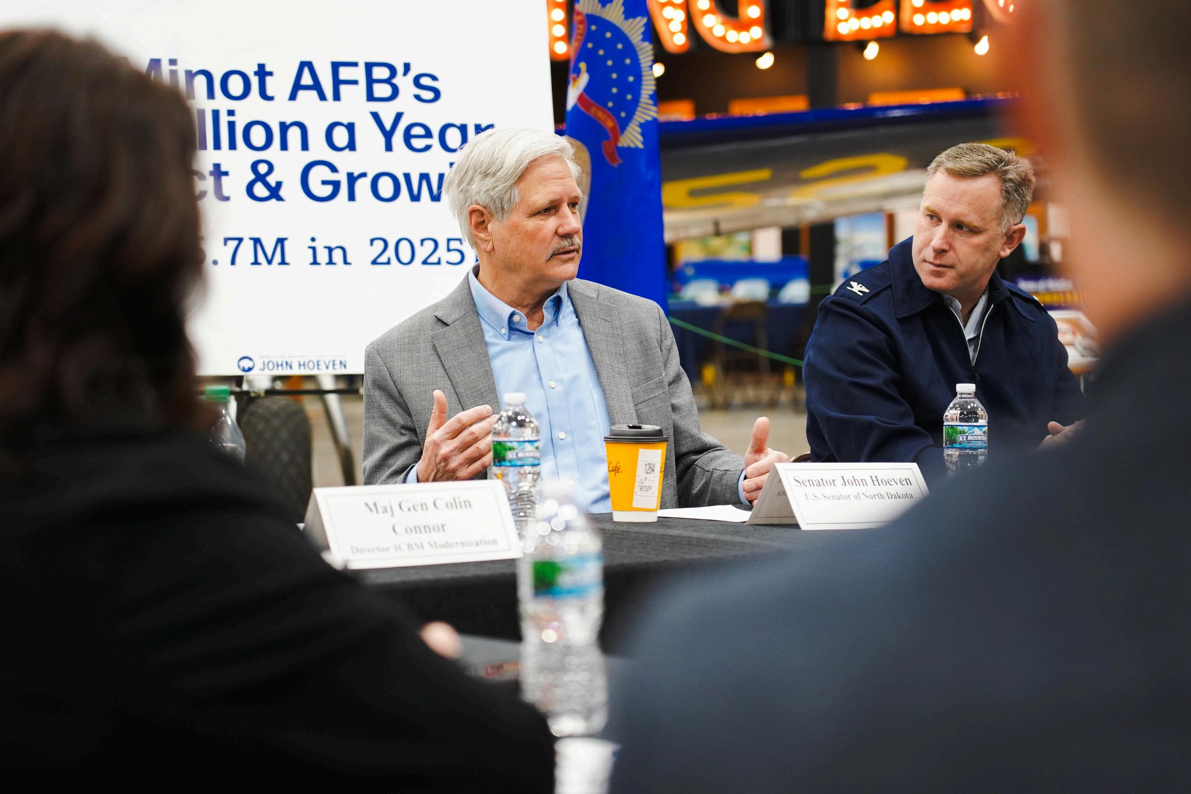 SenatorJohnHoeven,U.S.AirForceMaj.Gen.Colin Connor,andbaseleadershipjoinedTaskForce21to discussnewlysecuredfederalfundingsupporting nuclearmodernizationeffortsthatwillimpactMinot, including: