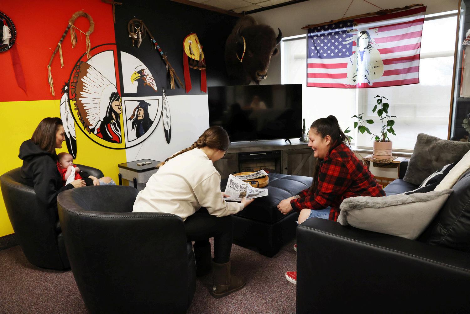 “Chairman Azure spent time speaking with our students in the Center, and he expressed the feeling of home it provided,” said Annette Mennem, Native American Cultural Center director “He decided he wanted to gift us new furniture and set it up with Stu’s Furniture in Belcourt to enhance our space The students and I worked together to pick out what best fit the needs of the center ”