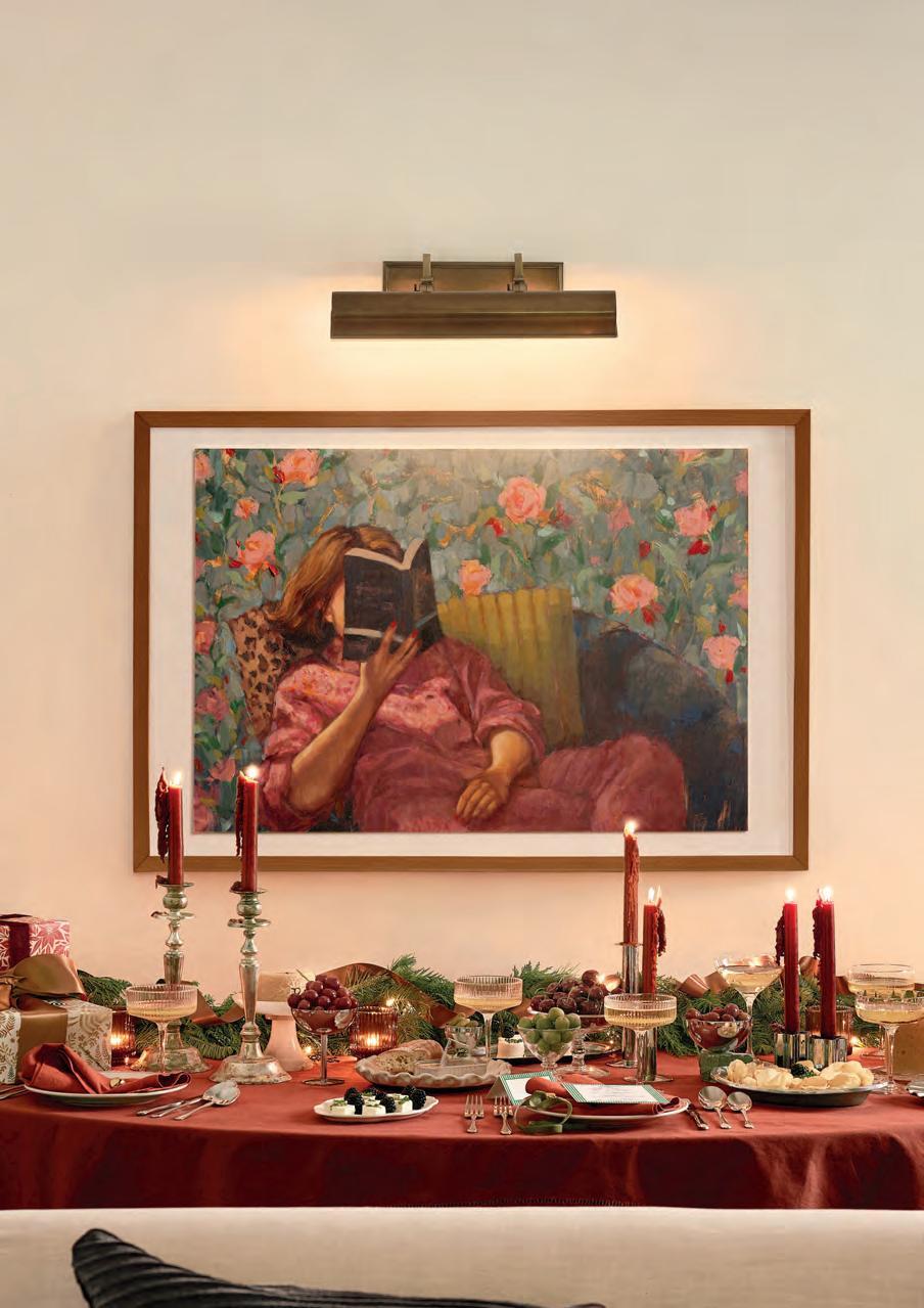 Wrapping Paper: Folk Poinsettia by Katherine Watson • Gold Ferns by Mercedes Cortés • Pub Plaid by Erin L. Wilson • Candles: Dark Brown 11-Inch Hand-Dipped Taper by Millstream Home • Burgundy 11-Inch Hand-Dipped Taper by Millstream Home • Fill-In Menu & Place Cards: Vintage Hotel by Morgan Kendall