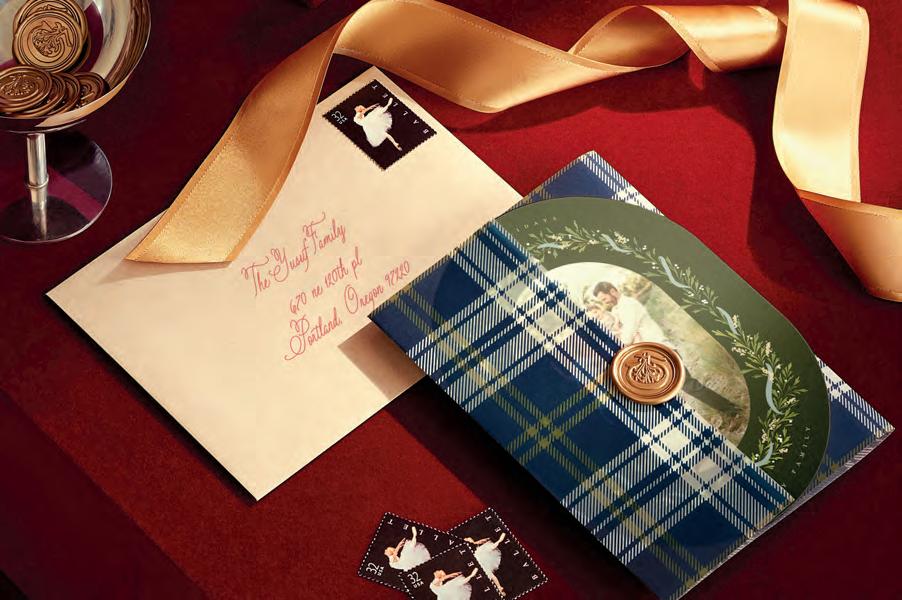 • Invitation Jacket: Plaid Lovers by Ivory Invitations • Holiday Card: Juniper Garland by Erin L. Wilson • Wax Seal: Antique Monogram by Inkspiring Letters