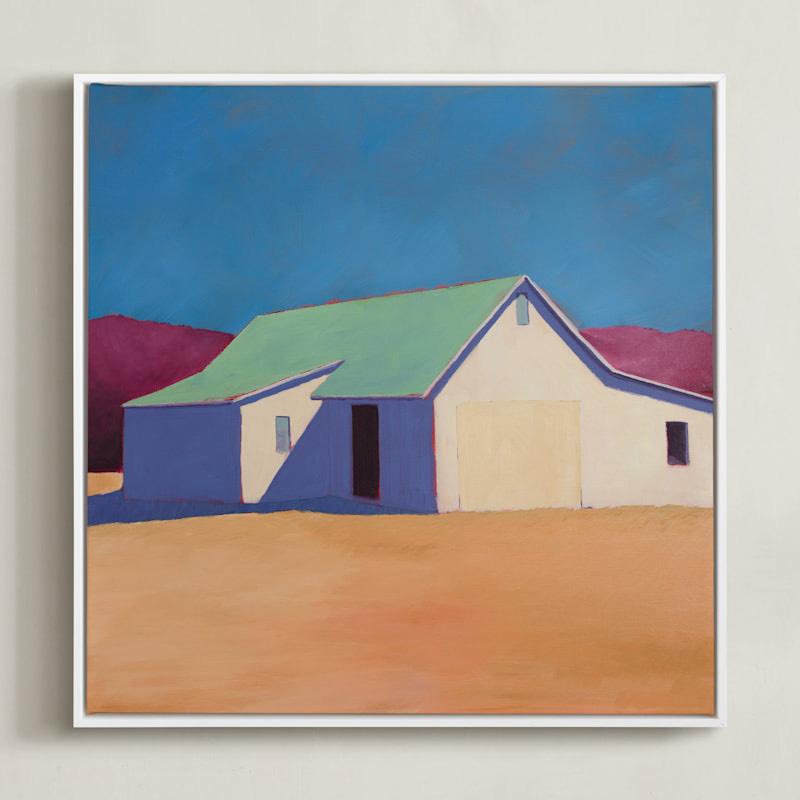 The canvas floats in a thin frame with a minimal gap for a clean, modern look. Frame profile width is 5/16” and depth is 2 3/16” for all sizes.