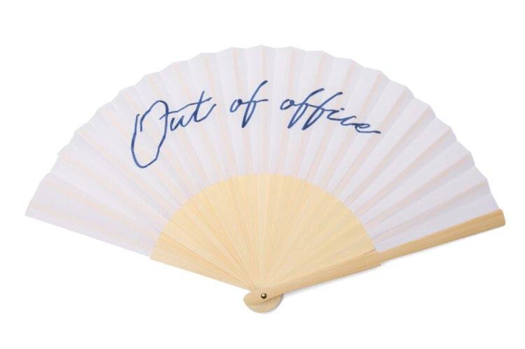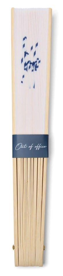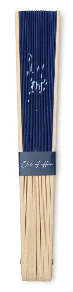 Hold deg avkjølt med denne bærbare viften Med den lekne fraværsmeldingen er den en morsom påminnelse om at det er på tide å slappe av Perfekt for stranden, ved bassengkanten eller på en varm sommerdag Denne viften kombinerer funksjonalitet med sjarm Laget av FSC®sertifisert bambus og polyester Kan logomerkes på endestykket av bambusen