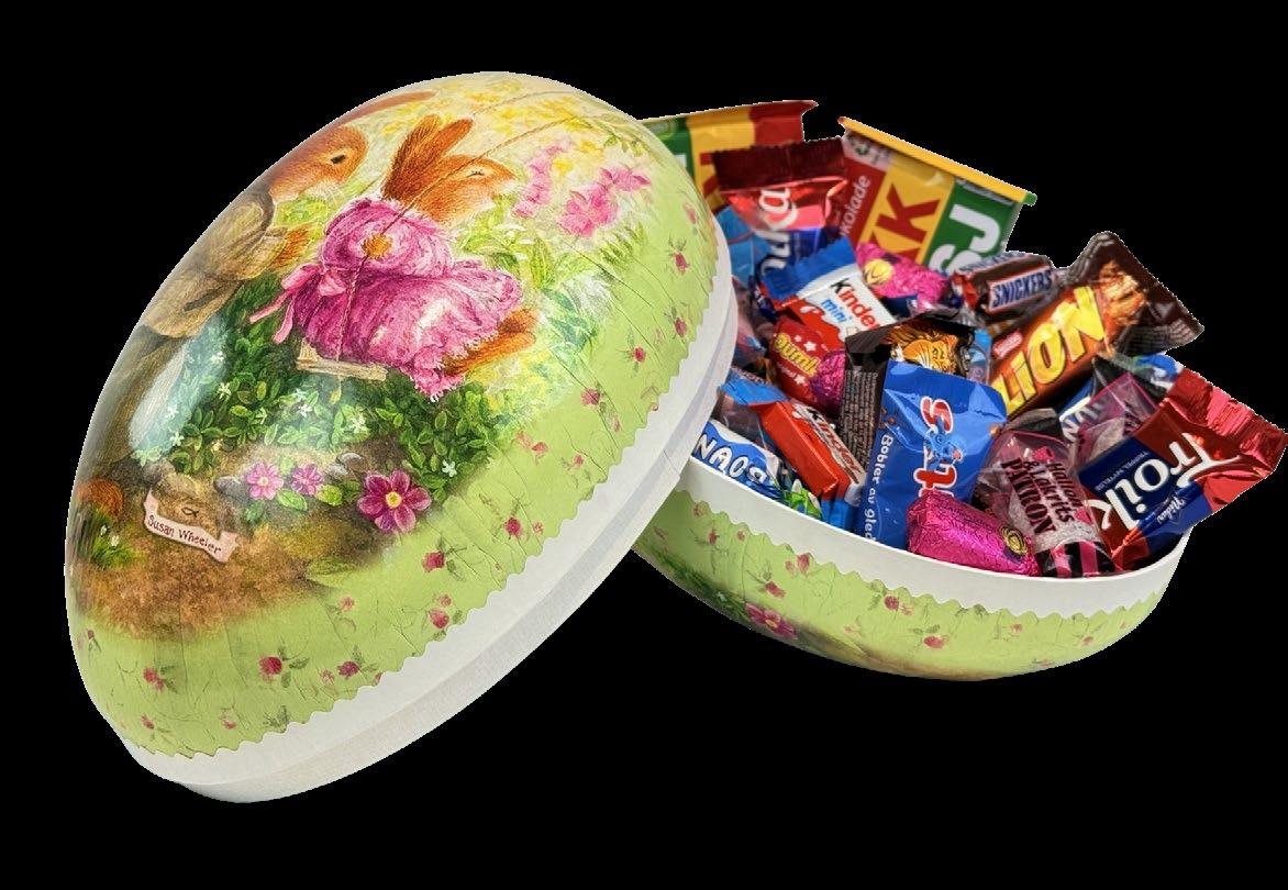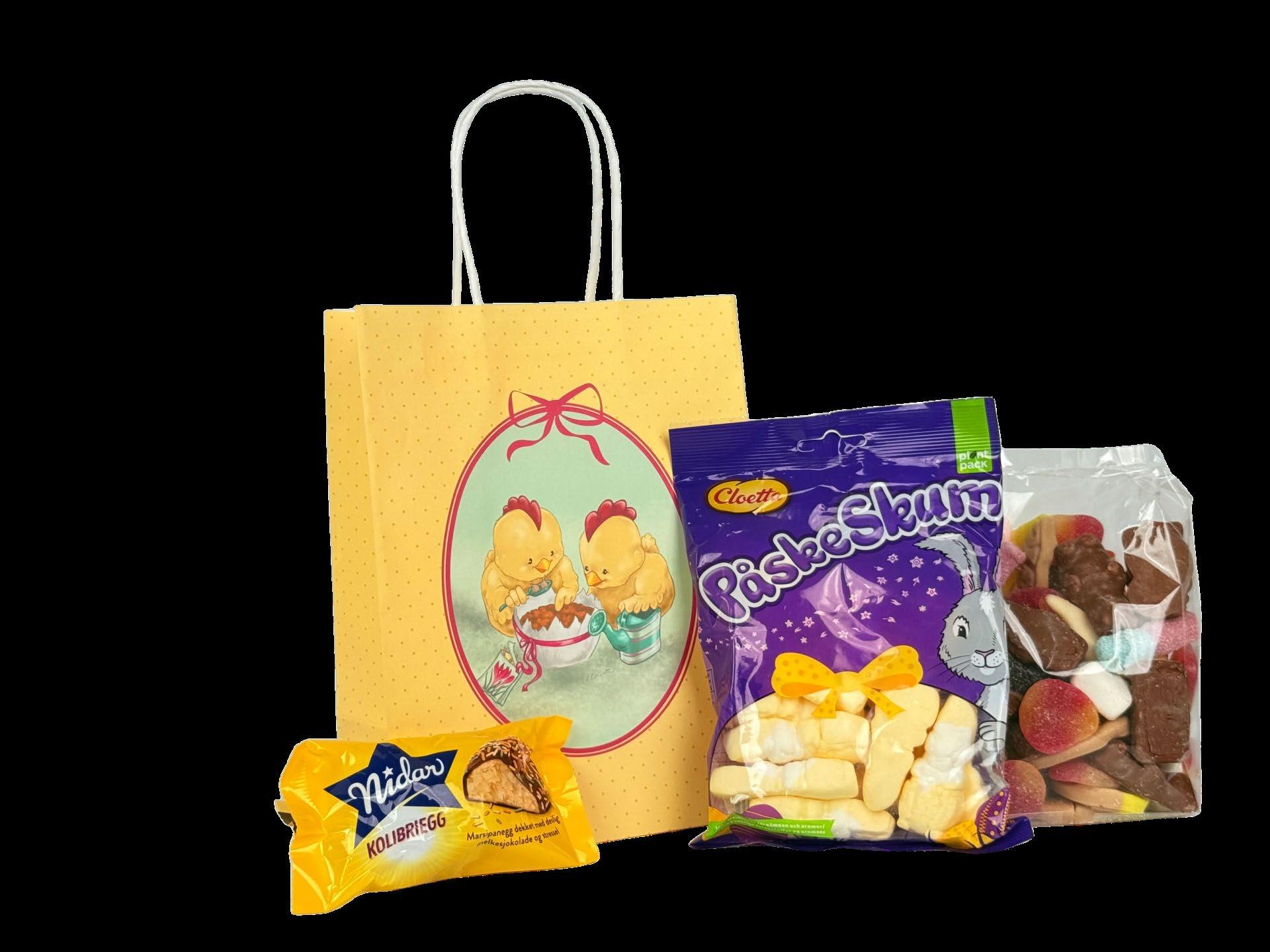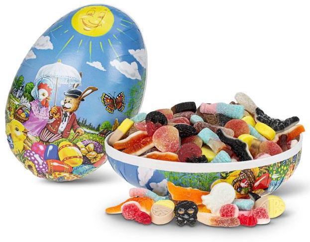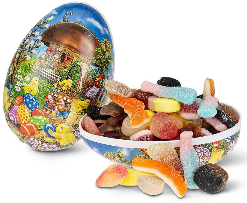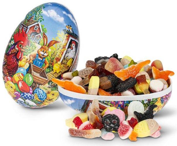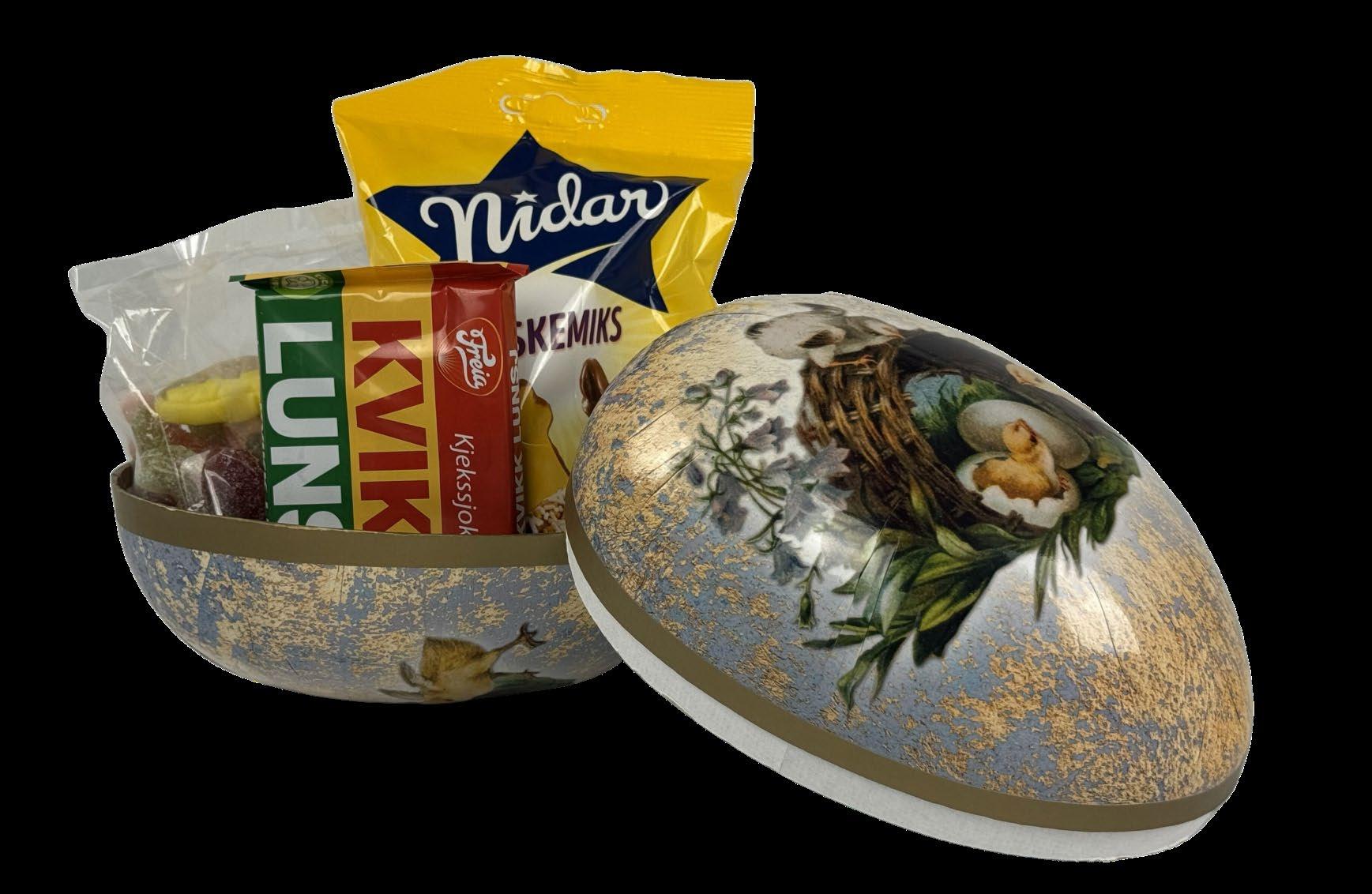 Et klassisk og stemningsfullt påskeegg fylt med deilig smågodt Med 300 g innhold er dette egget et perfekt mellomstort valg –ideelt som en søt overraskelse til noen du vil glede Et vakkert og dekorativt påskeegg som kombinerer utseende og smak Kr 129 pr stk