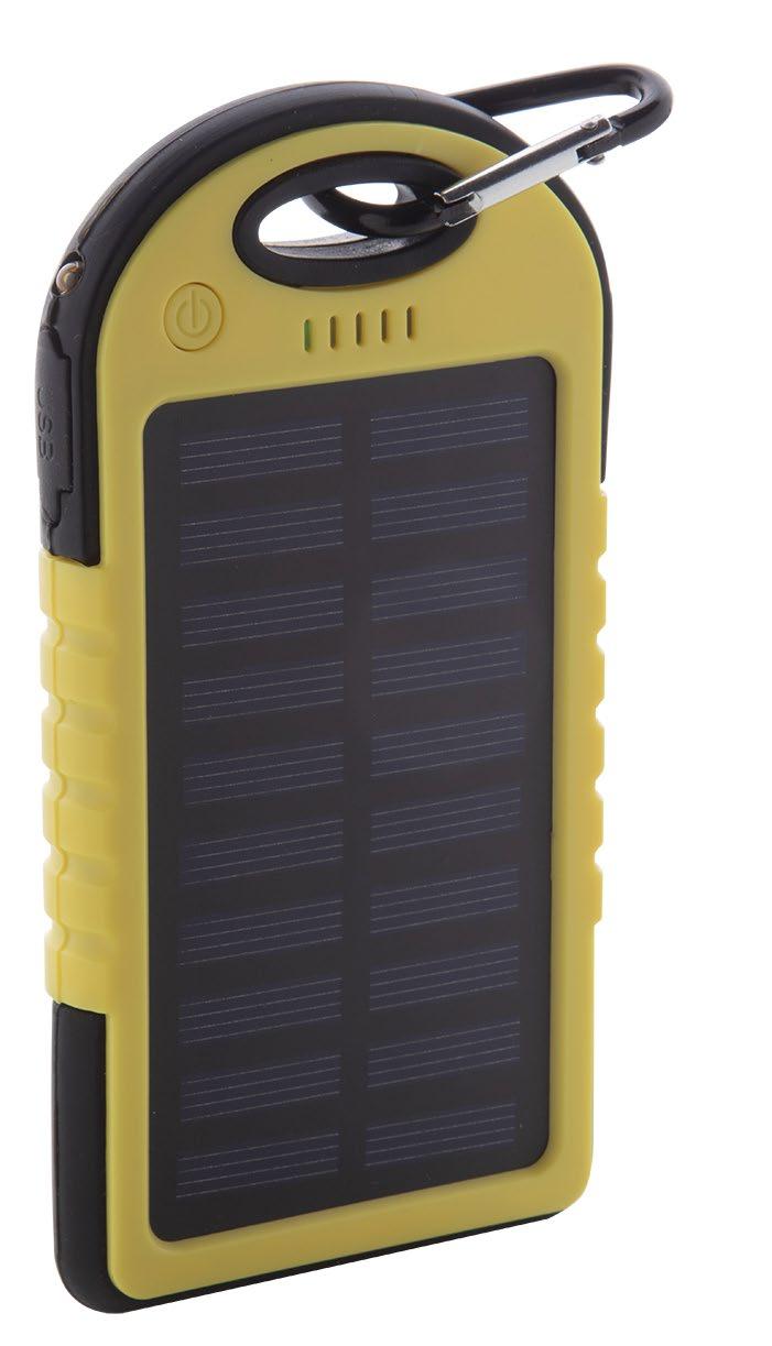Silikonbelagt plast powerbank med 4000 mAh batteri, solcellelader og 1 LEDlommelykt Inkludert micro-USB-ladekabel