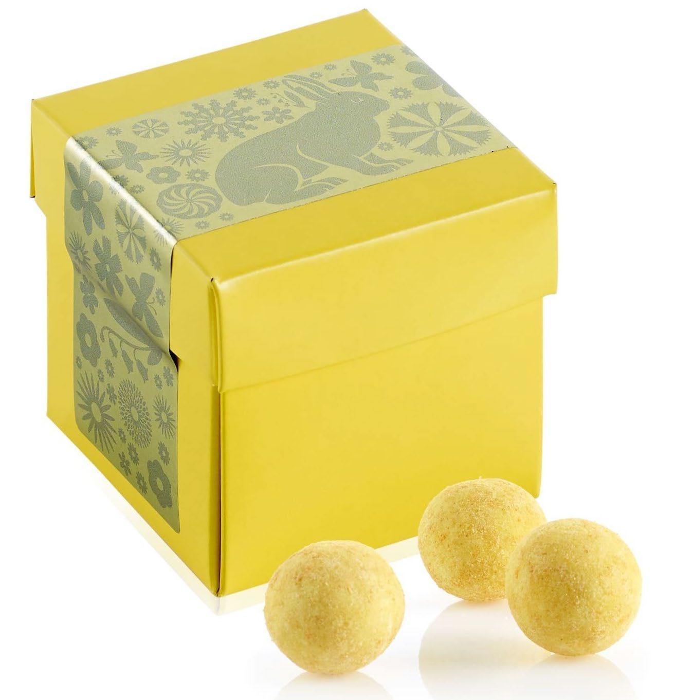 Gourmetegg, 90 gr lakriskuler med hvit sjokolade og pasjonsfrukt Pakket i cellofan med gul sløyfe