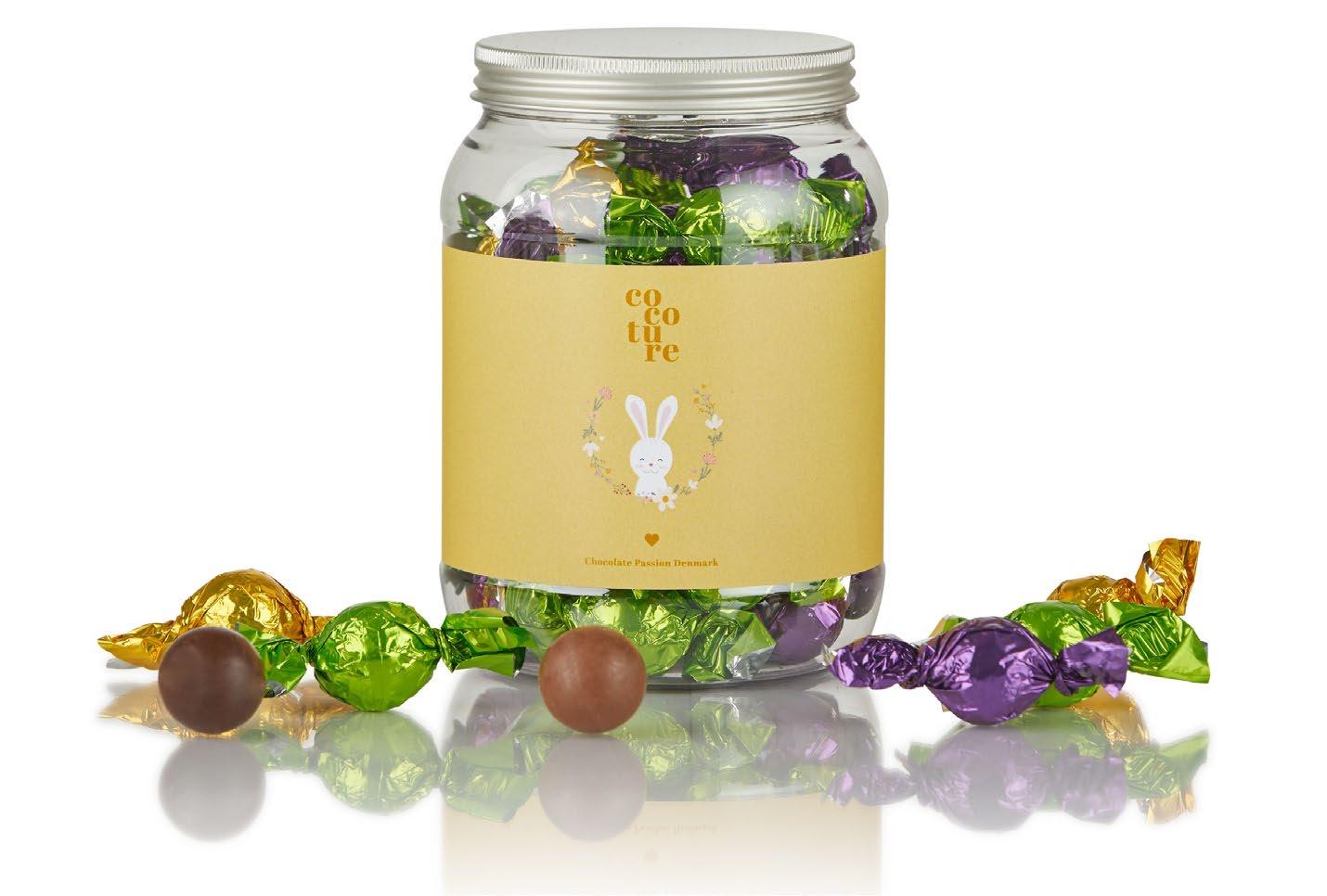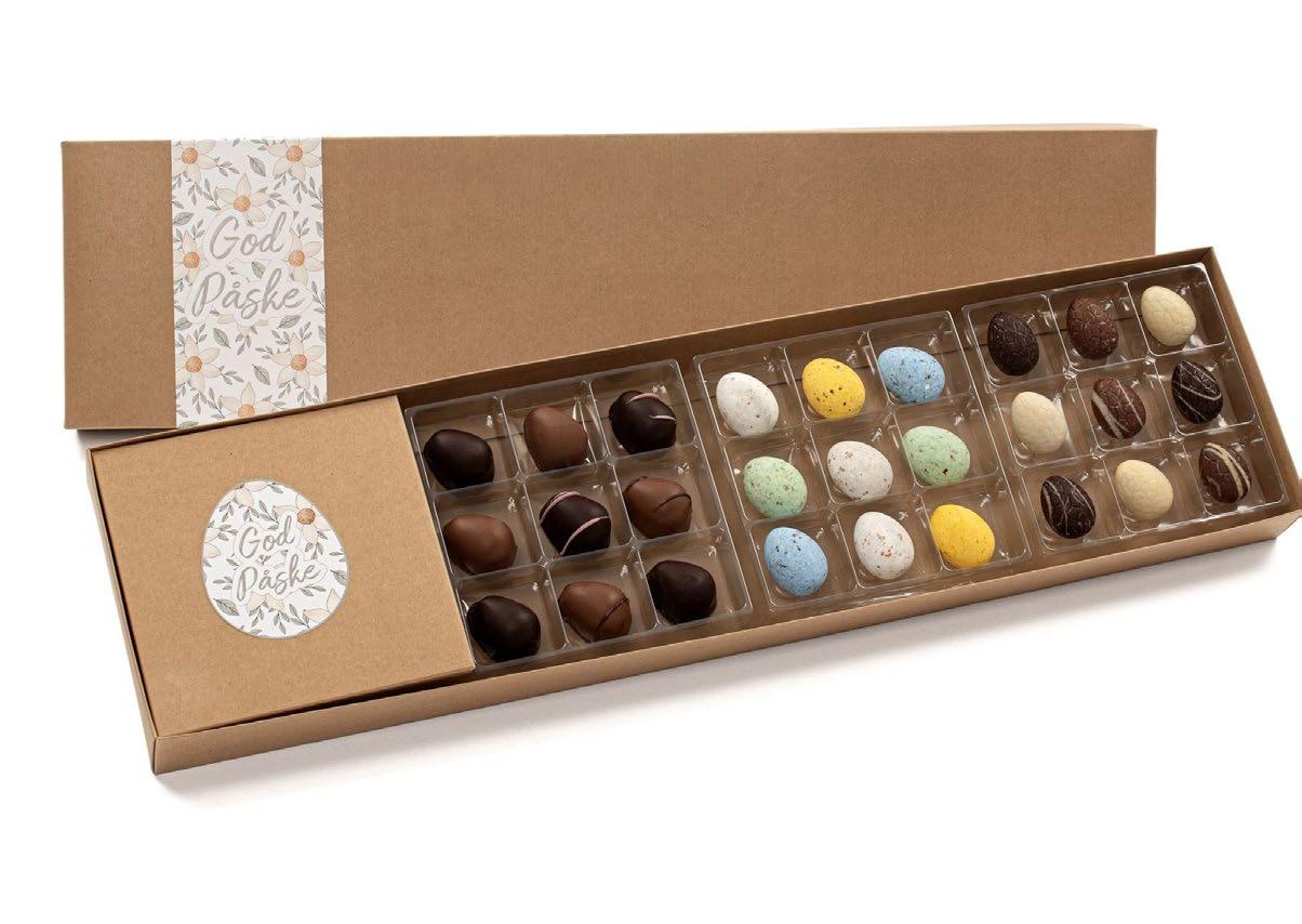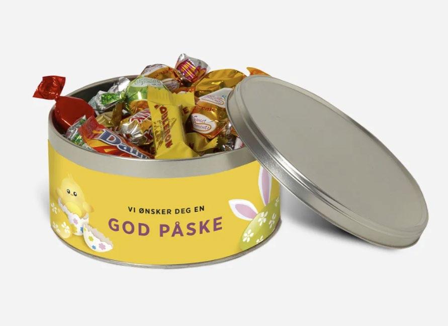 Perfekt påskegave! 110 gr innhold Kan merke lokk med egen etikett med logo og hilsen, eller kort lagt inni Tillegg kr 10 Kr 460 pr stk