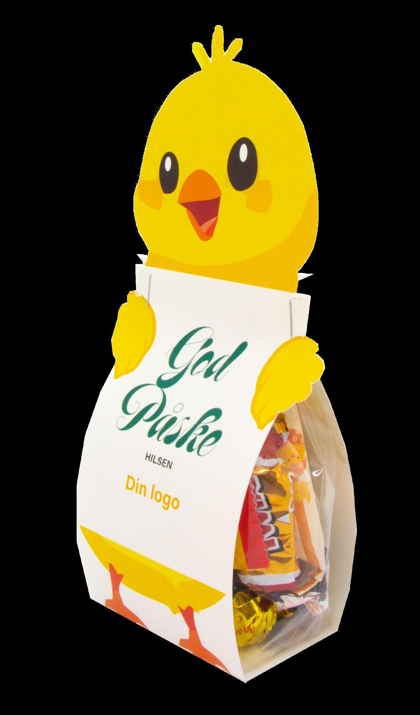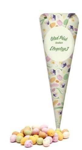 Med egen logo – fylt med melkesjokolade-egg med sukkerskall. 100 gr
