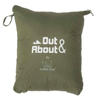 Friluftspakke inklusive trykk på alle artikler! Vannavstøtende dry bag sekk 210D med rom for opptil 40 liter Nedvendbart bærehåndtak Drybagen inneholder hengekøye med myggnetting og snorer, Helin termoflaske 500 ml, grillspyd, emaljekrus og sitteunderlag i ull