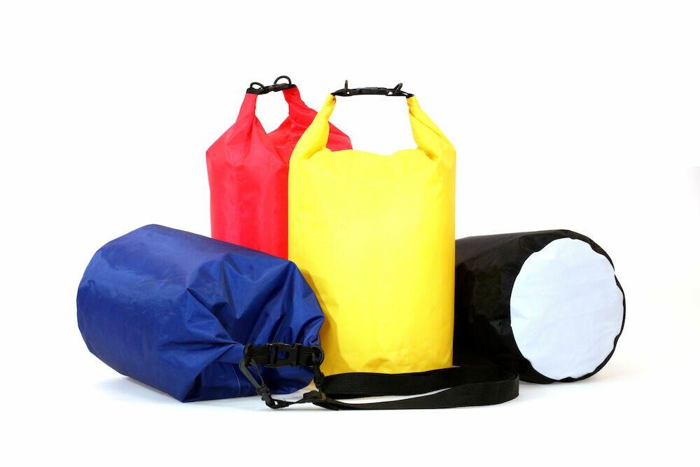 Vanntett duffelbag i friske farger Laget i lett materiale for minimal vekt, og for å holde klær og verdisaker tørt og trygt
