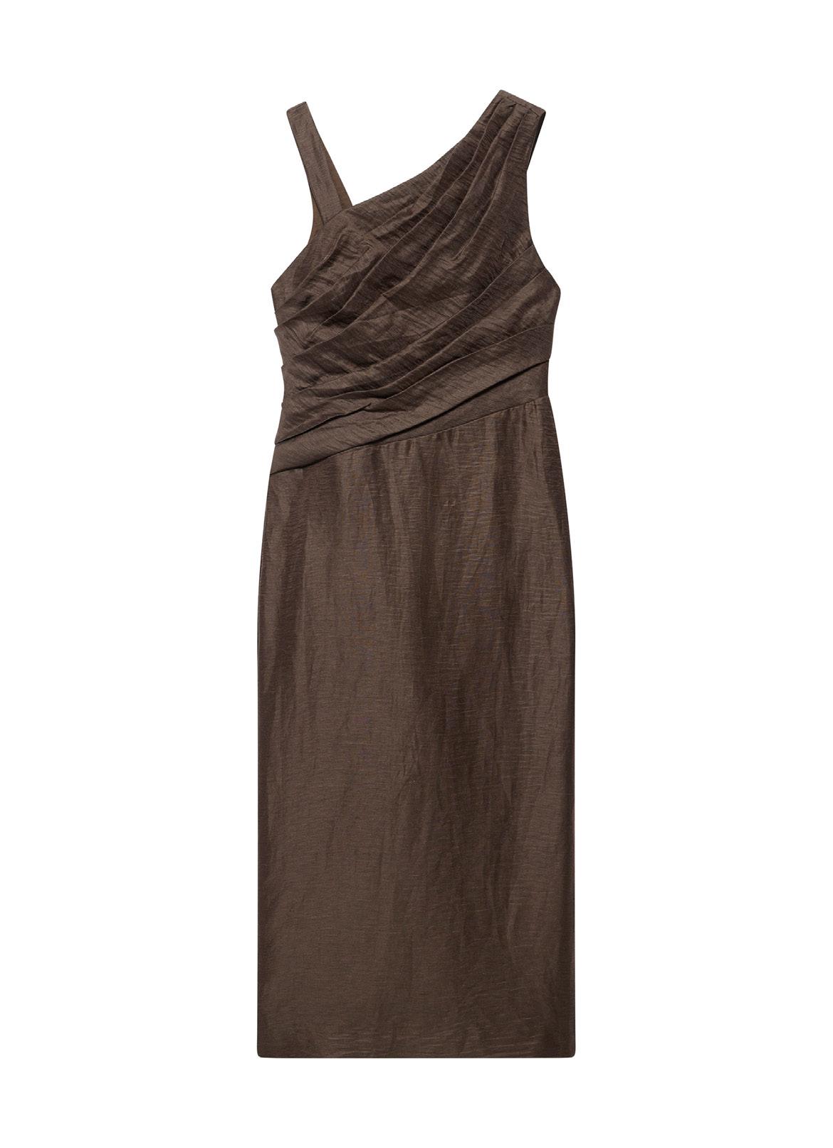 Sharp sleeveless finish for structure on top, fluid silhouette provides movement and a solo tone elongates