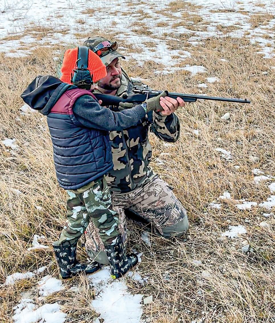 Anderson helps son Ryland with a shot. Shooting proficiency is up there with physical fitness in terms of qualities to bring to the table in a relationship based around hunting. (DAVE ANDERSON)