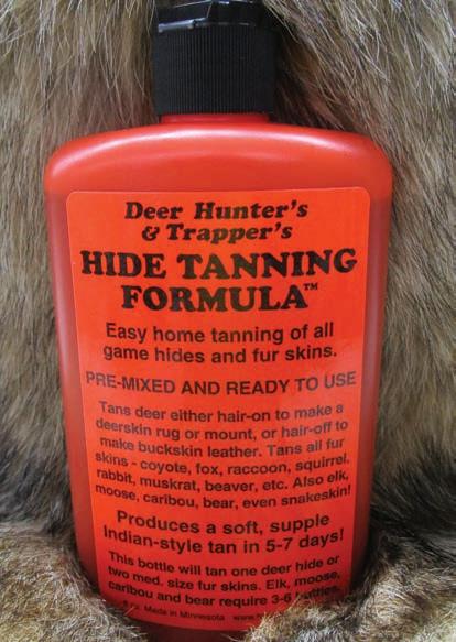 One 8-ounce bottle will tan one deer hide in two medium-sized fur skins. Bear, elk, moose and caribou require three to six bottles. Complete instructions are included. You’ll be amazed how easy it is!