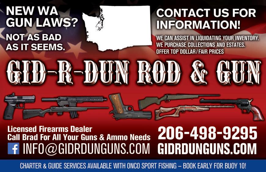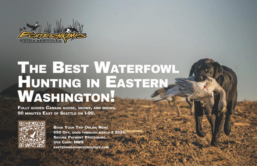 nwsportsmanmag.com | MARCH 2024 Northwest Sportsman 17 NORTHWEST SPORTSMAN is published monthly by Media Index Publishing Group, 941 Powell Ave SW, Suite 120, Renton, WA 98057. Periodical Postage Paid at Portland, OR and at additional mail offices. (USPS 025-251) POSTMASTER: Send address changes to Northwest Sportsman, 941 Powell Ave SW, Suite 120, Renton, WA 98057. Annual subscriptions are $39.95 (12 issues), 2-year subscription are $59.95 (24 issues). Send check or money order to Media Index Publishing Group, or call (206) 382-9220 with VISA or M/C. Back issues may be ordered at Media Index Publishing Group offices at the cost of $5 plus shipping. Display Advertising. Call Media Index Publishing Group for a current rate card. Discounts for frequency advertising. All submitted materials become the property of Media Index Publishing Group and will not be returned. Copyright © 2024 Media Index Publishing Group. All Rights Reserved. No part of this publication may be copied by any means, electronic or mechanical, including photocopying or recording by any information storage or retrieval system, without the express written permission of the publisher. Printed in U.S.A. SUBSCRIBE TODAY! Go to nwsportsmanmag.com for details. ALSO INSIDE