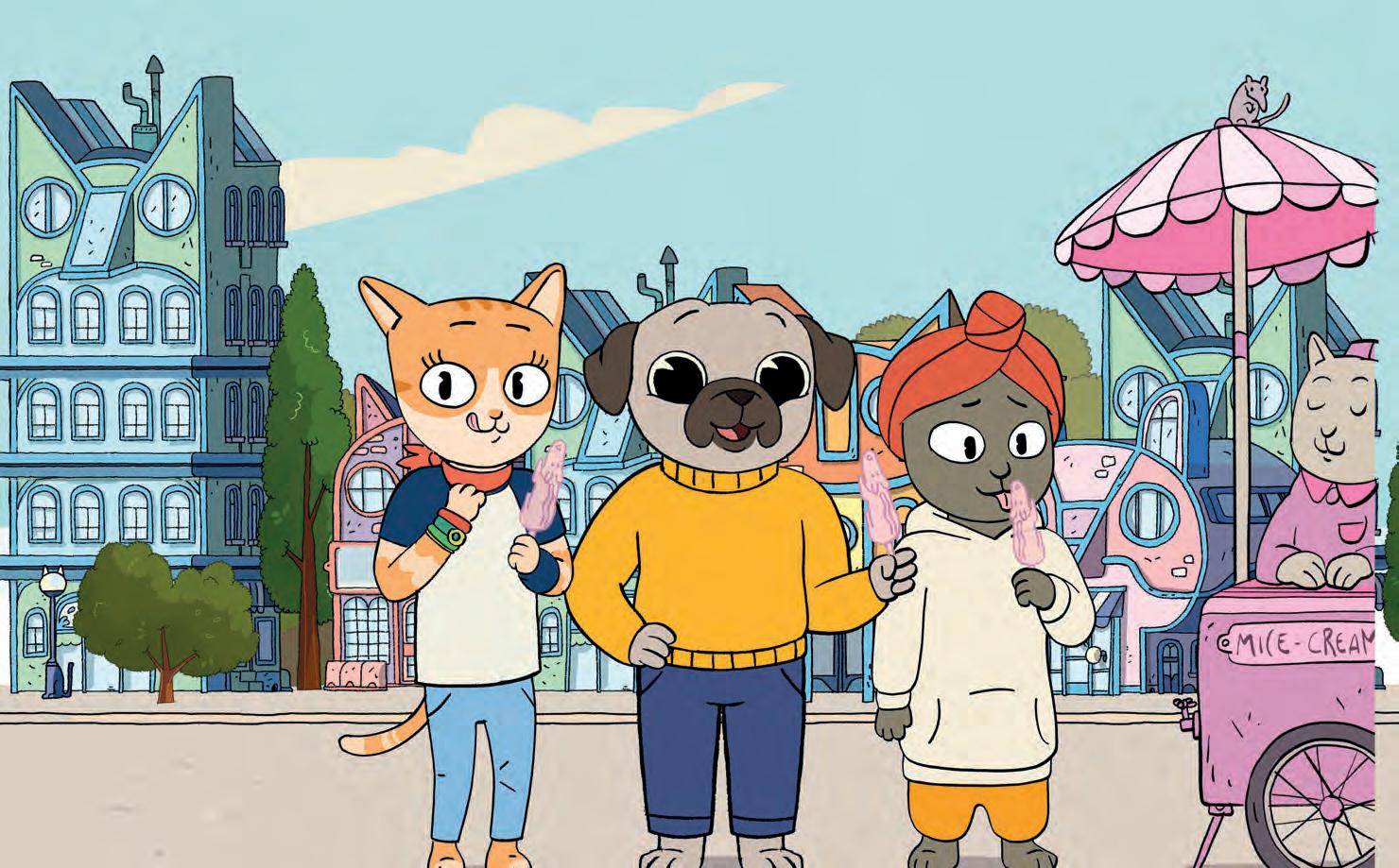 CREATIVE studio Turnip + Duck brings Maddie + Triggs to MIPCOM CANNES, an animation series aimed at five- to sevenyear-olds that began life as a 15-episode podcast series on RTEjr Radio. The series follows the adventures of seven-year-old Mad die, who happens to have a vision impairment, and her dog best friend Triggs. Although Maddie cannot see the world around her well, she is a really brilliant listener. Triggs is an adorable labradoodle retriever cross who loves music, mischief and bis cuits. The TV series has been developed with support from the National Council for the Blind of Ireland, Irish pubcaster RTEjr and Screen Ireland. Also, Turnip + Duck’s mixed-media series Critters TV has recently been picked up by Sky Kids in the UK and its pre-school chemistry primer Atom Town is set to air on RTEjr later this year.