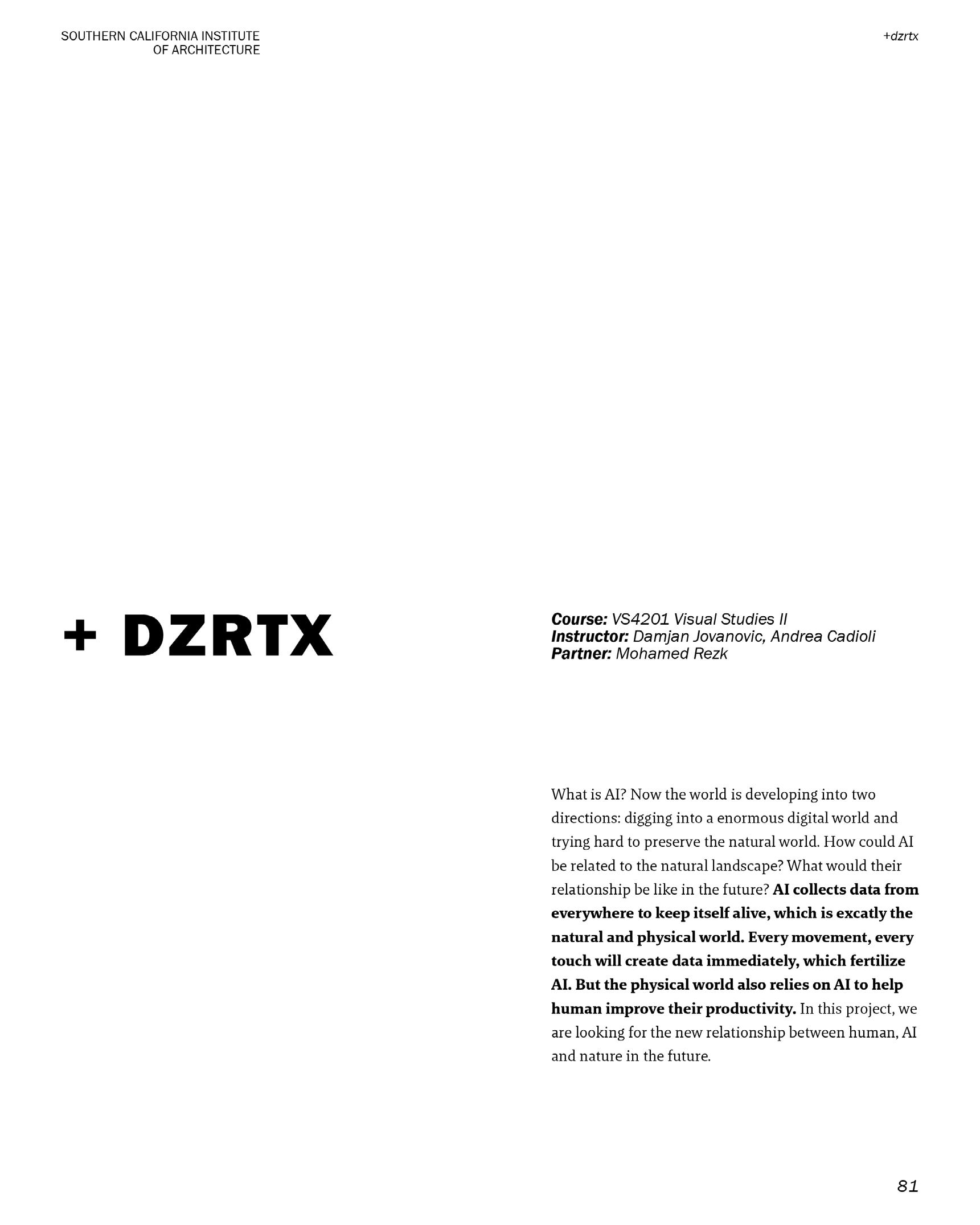 Previously,shereceivedherBachelorsofArchitecture degree fromZhejiangUniversity.Beforejoining SCIArc, shegains professional experienceof architectural designin1DesignLab andSayArchitectsasanintern.