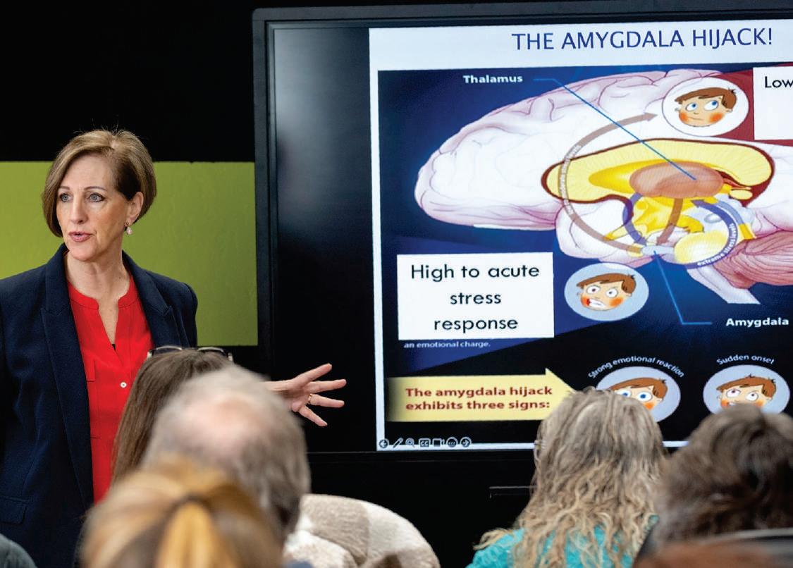 Sheteachestheneuroscienceofthis. Thebrain,sheexplains,isaselfish organ,inagoodway,becauseitis wiredforsurvival.Itcannot differentiatebetweenrealityand imagination,orbetweenwitnessinga tragedyandhearingagraphicstory aboutone.Whenfirstresponders “catharticallyventilate,”sharingthe gruesomedetailsofascenetogetthe painout,thelistener’sbrainpaints picturesasthedetailsofthestory unfold.Thosepicturesstick,causing thelistenertoseethemrepeatedly, whichinturncancauseastrongstress reactionifthoseimagesaretraumatic ones,whichmaybesoseverethatthe listenerneedsprofessionalhelpto recover