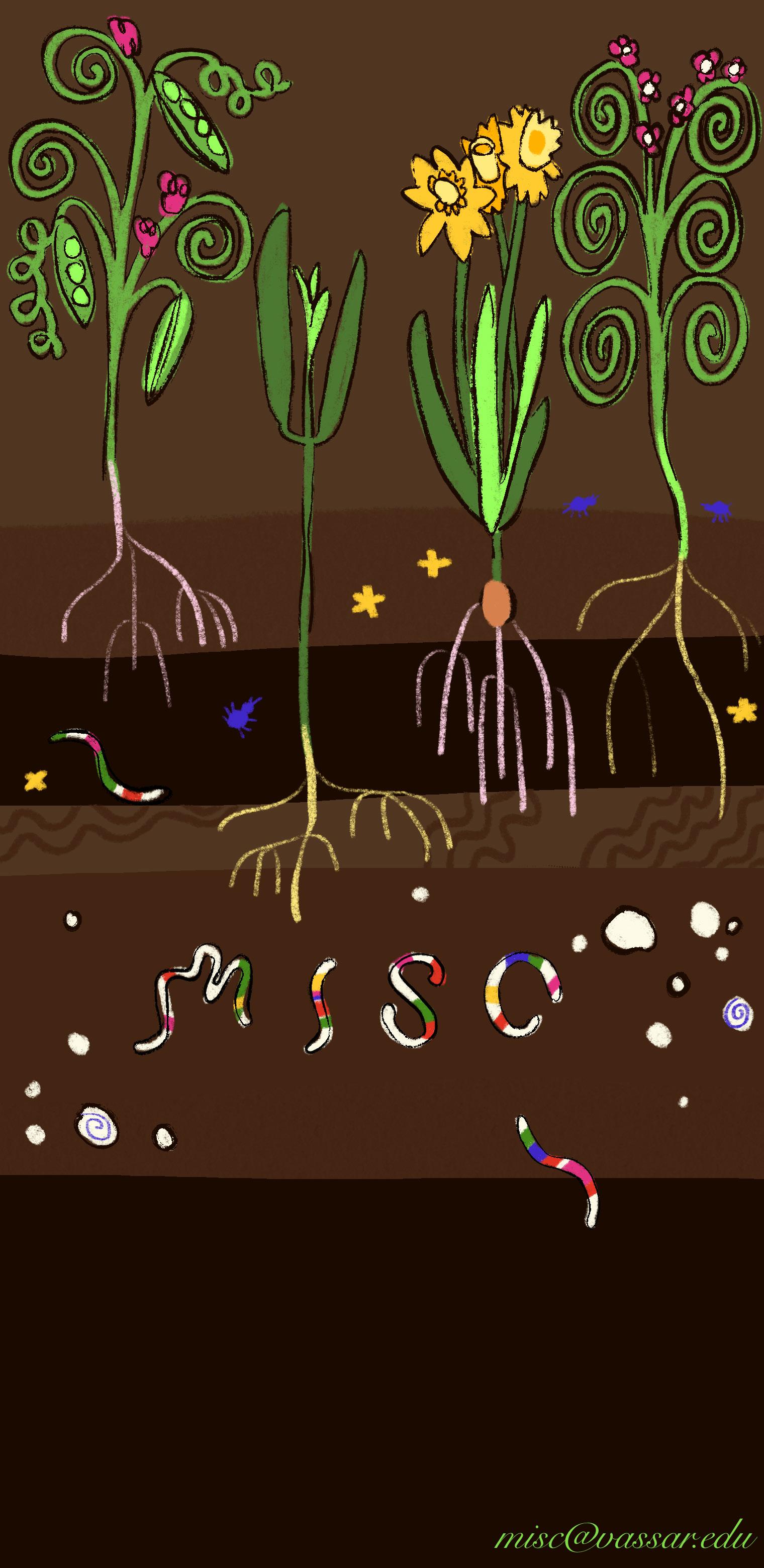 Every week in biology lectures, I wait for the professor to say something like, “Oh, and the reason all these puzzle pieces even bother to come together is…” But they nev er explain or explore these questions. Is this the humanities student in me, looking for deeper meanings? Why is “life” so organized? Is there really a “why” out there that is grounded in science? Before I found an answer to this annoying ques tion, walking around campus felt ironic. Everywhere you look on Vassar’s campus