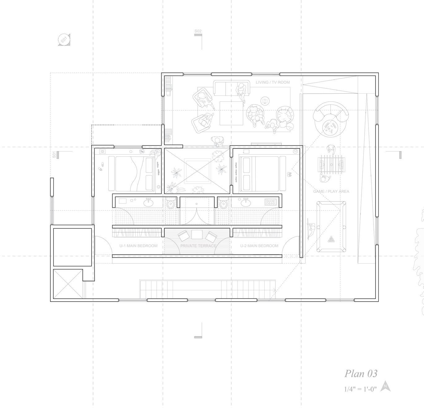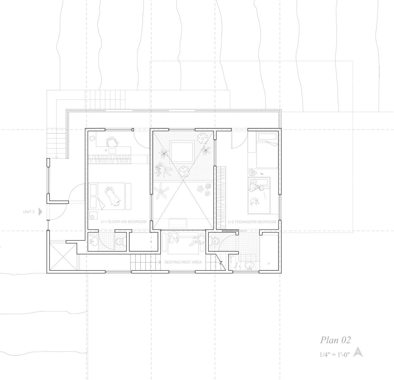 This duplex reconsiders domestic partnership through architecture, proposing a model of cohabitation that preserves autonomy while fostering collective life. Designed for a couple, the project departs from conventional shared dwellings by providing each partner with an independent two-bedroom, two-bathroom unit.