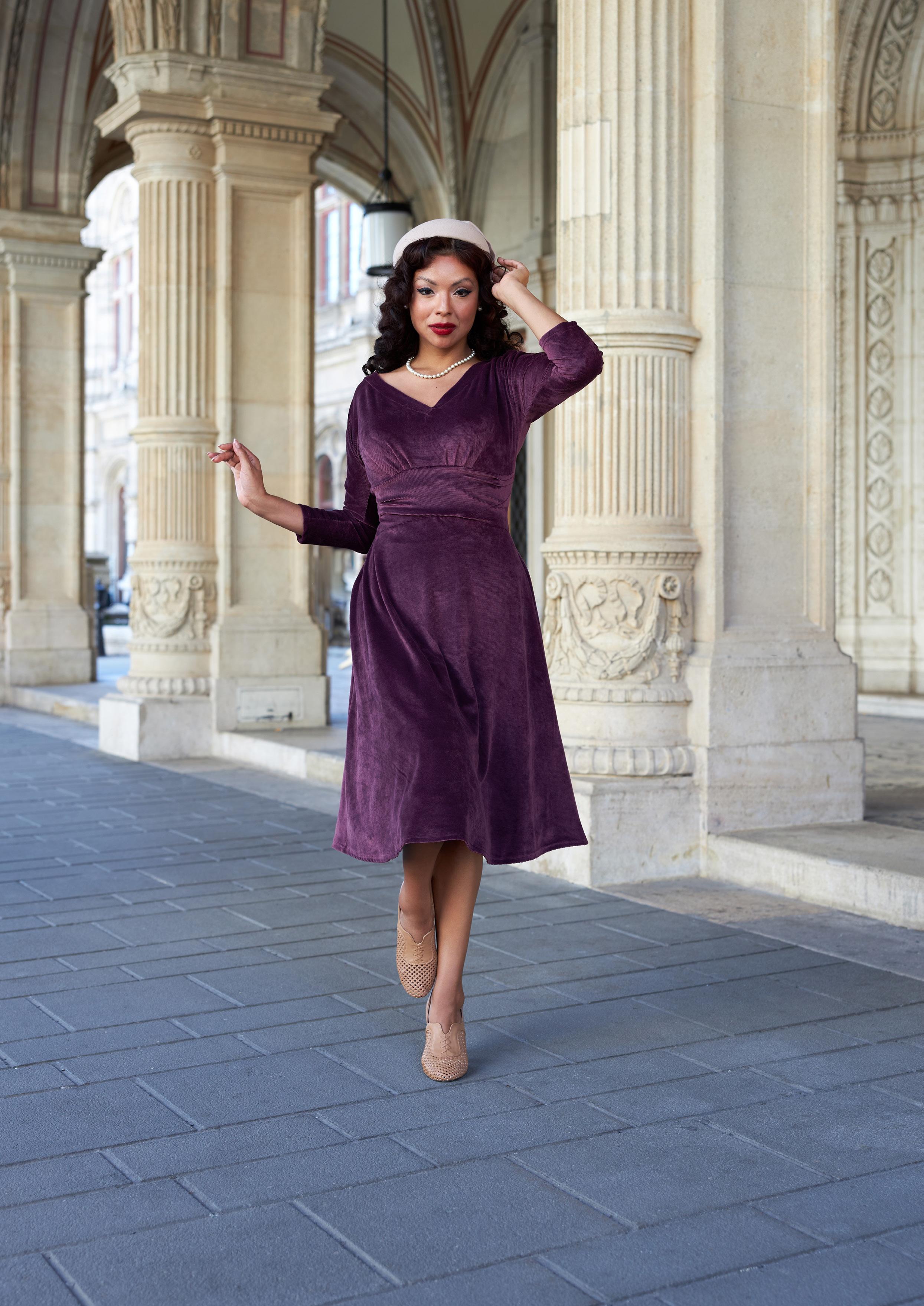 Vintage style meets modern comfort with our cozy 1940s-inspired knit dress in warm floral fabric.