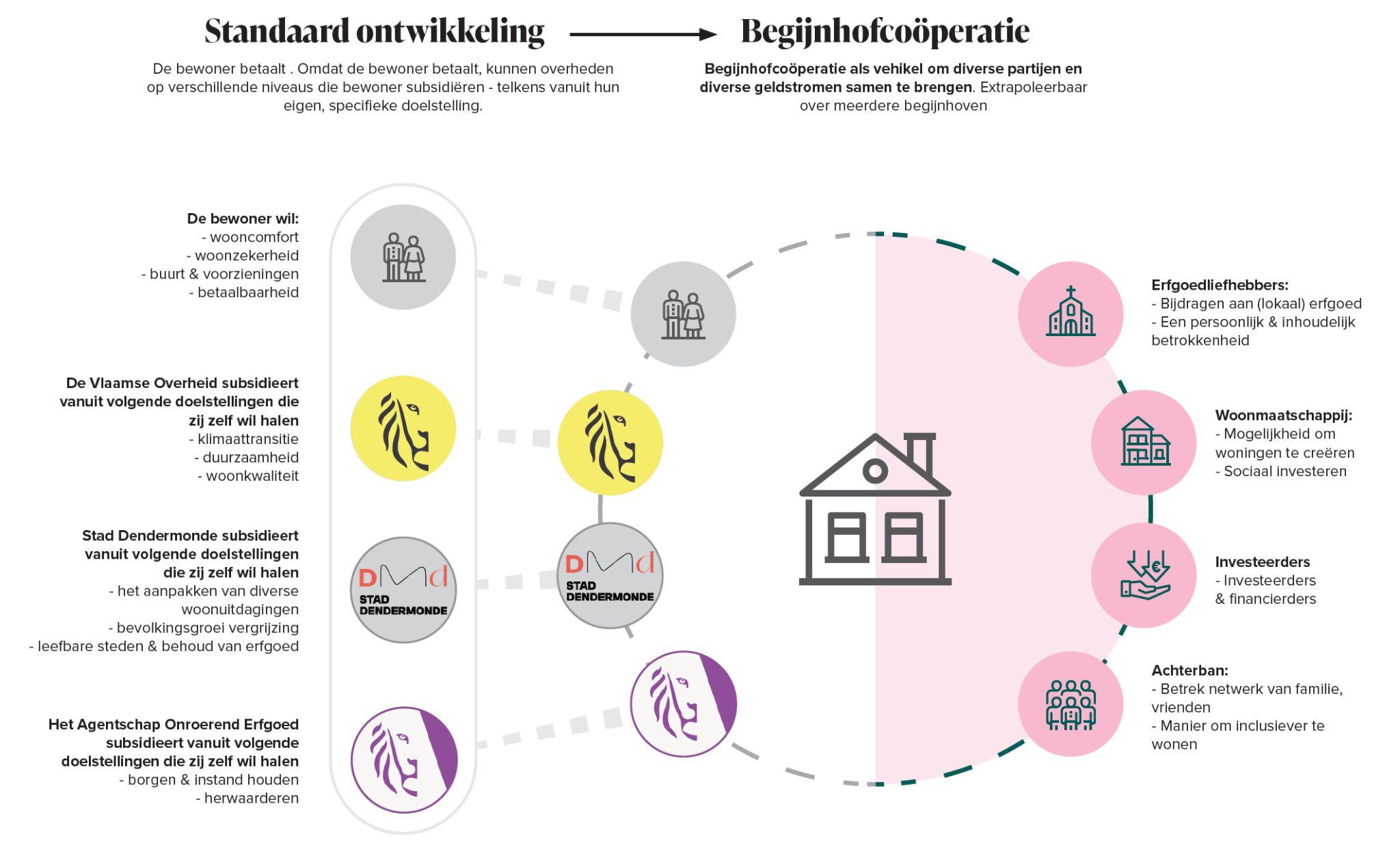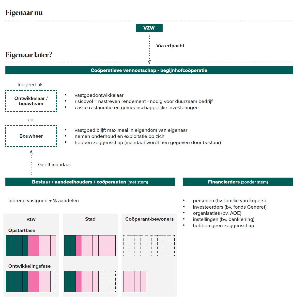 vzw/stad(/DDS) nemen de rol op van eigenaar, vastgoedontwikkelaar en exploitant.