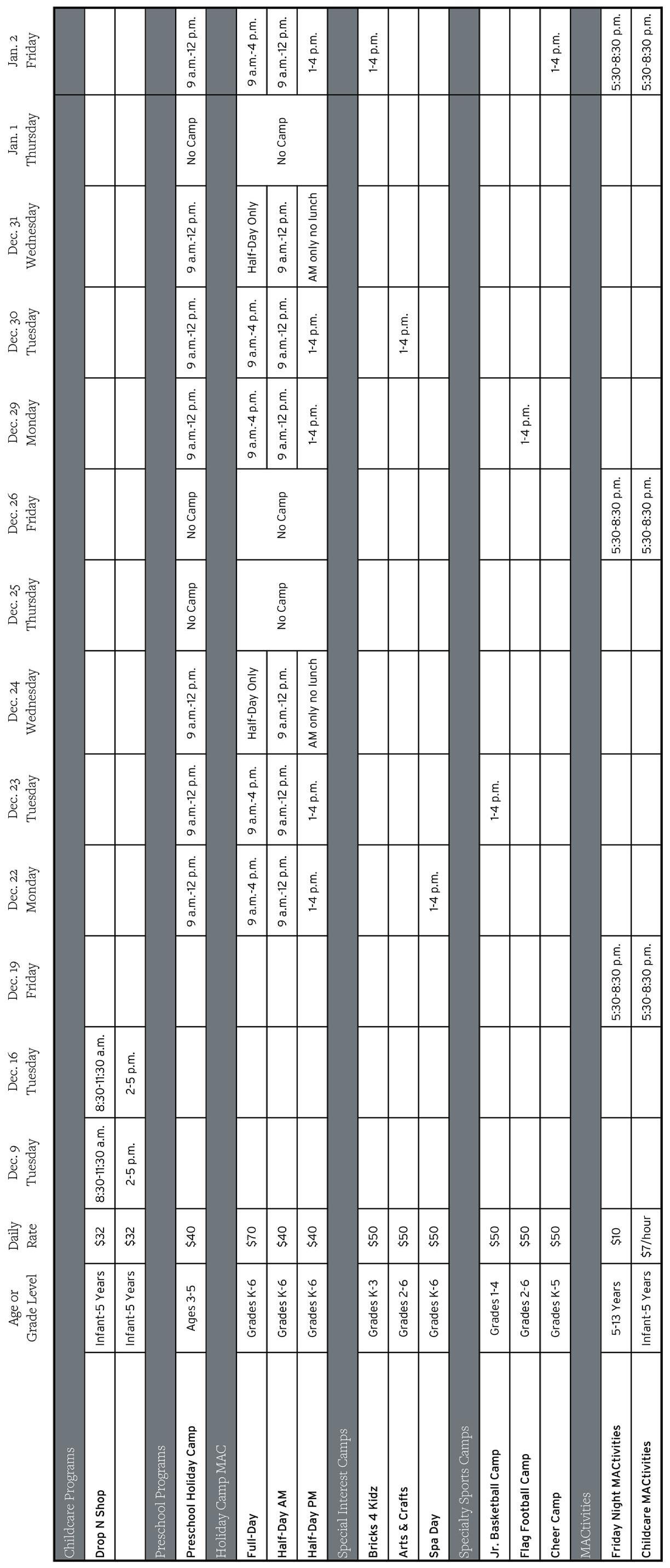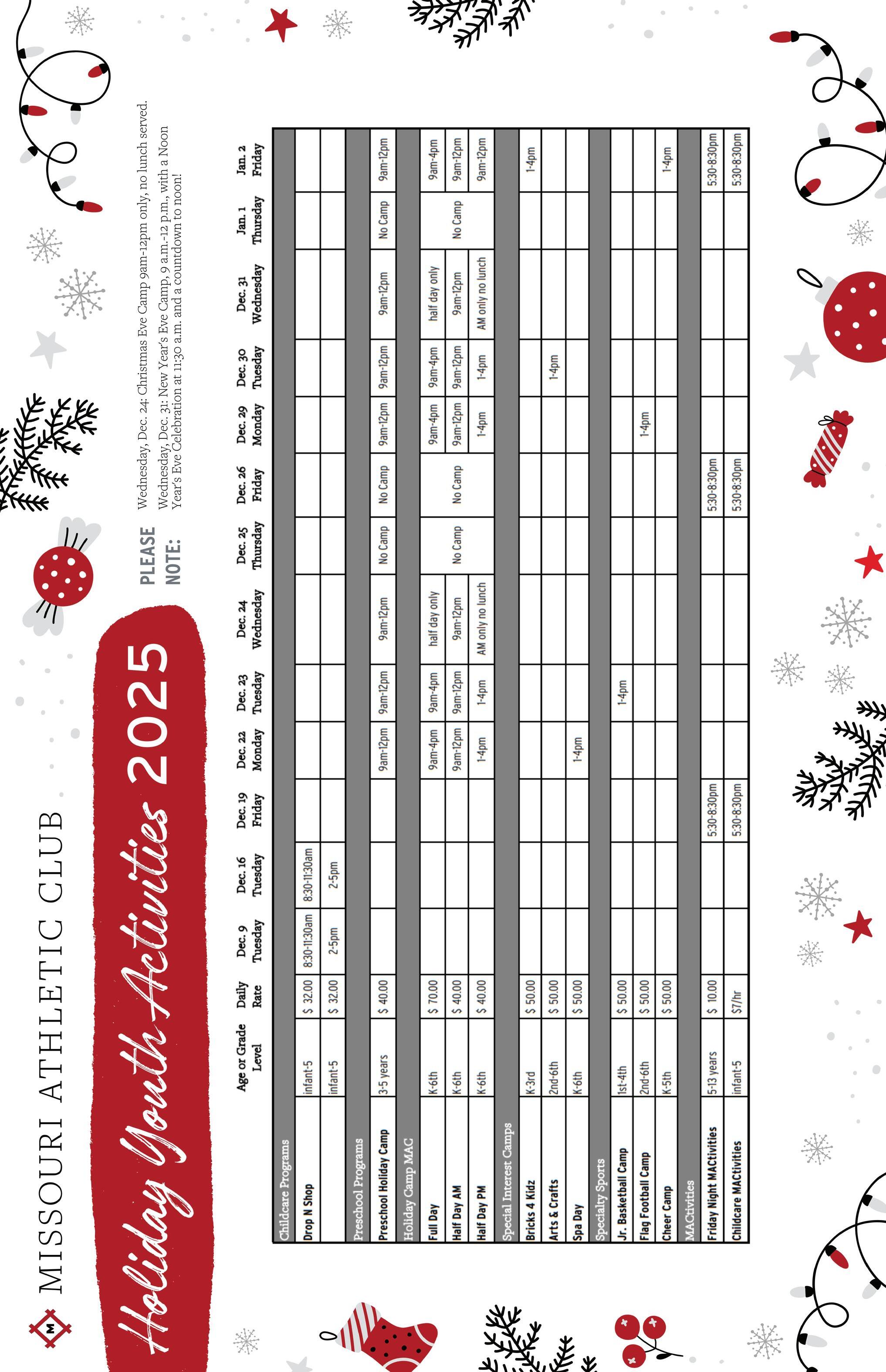 Registration for 2025 Holiday Youth Programs opens on Jumbula at 9 a.m. Nov. 3 .