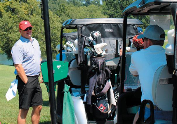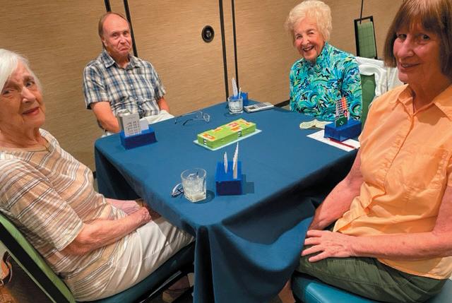1 MAC members volunteered at the Ascension Golf Classic, which took place from Sept. 8 through Sept. 10. 2 The MAC Golf Club took a trip to the Lake of the Ozarks for a day of golf at Porto Cima. 3 MAC Golf Club members spent free time on the lake during their Porto Cima weekend trip! 4 MAC member Warren Sullivan turned 100 on Friday, Sept. 8! Mr. Sullivan and his wife Louise posed for a photo to commemorate this incredible milestone. 5 (L-R) Sally Harm, Brad Karner, Sally Bakula and Peggy Karner enjoyed a game of bridge at the West Clubhouse. 6 Pat and Jane Boyle attended the August FYC meeting together. 7 Pastry Chef Liz Behlman poses with a gorgeous wedding cake she helped create with the MAC Pastry Team. 8 Frank and Ann Martin were all smiles at the August Forever Young Club meeting. 9 MAC member Richard Miller wore his Club merch on his visit to Stonehenge.